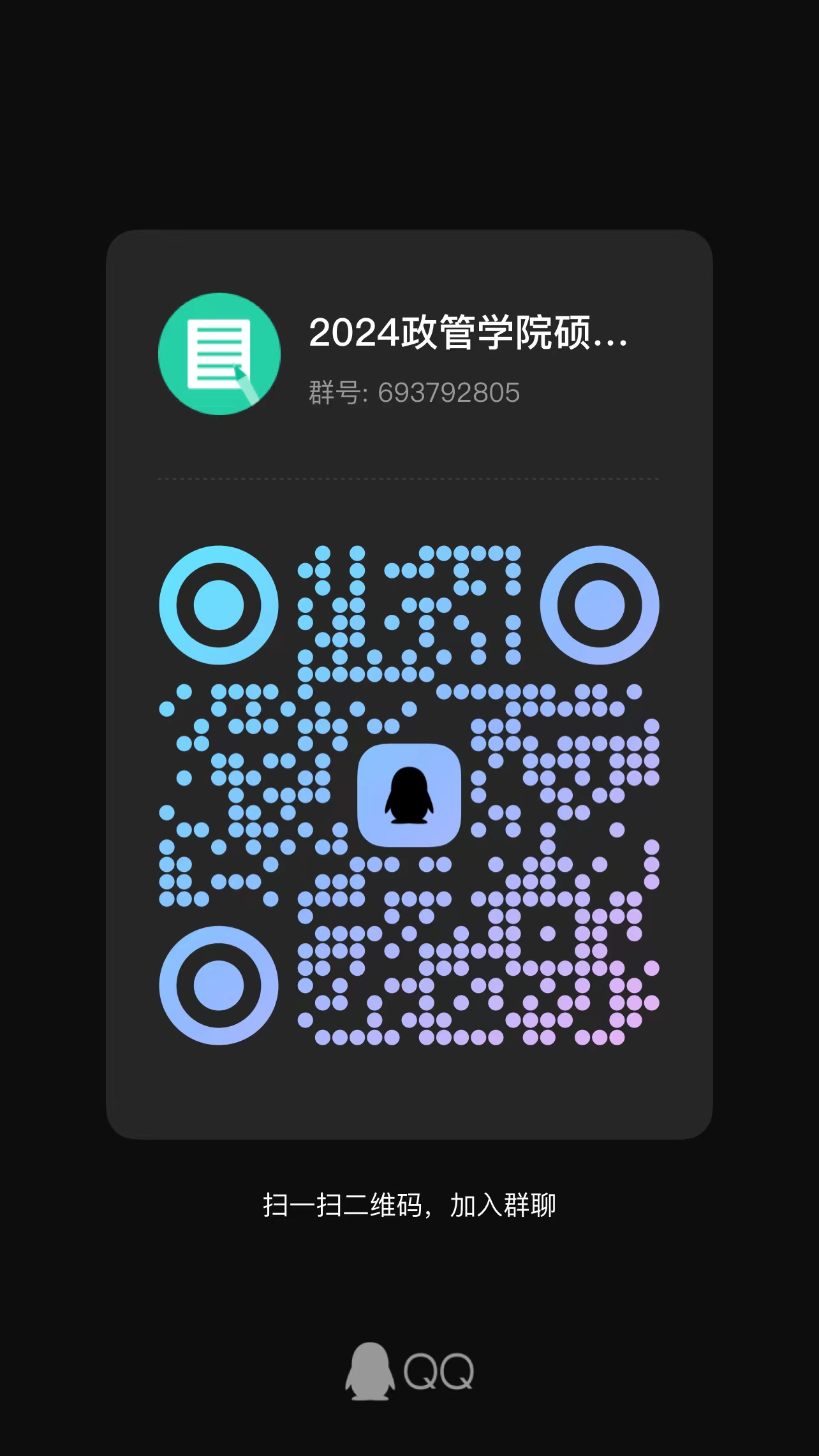 学院将组建复试QQ群,请参加复试考生入群。该群仅限参加我院推免复试考生本人加入(名单以学院公示名单为准),入群请提供“考生身份证号+报考专业+考生姓名”以等候验证。进群后,所有考生应将“群昵称”修改成“报考专业+姓名”。待所有考生入群后,我院将正式启用QQ群发布消息,请考生时刻关注群通知。