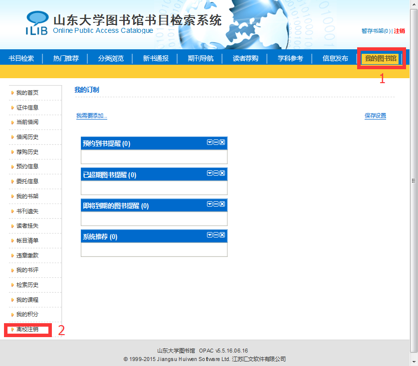 4、曾在我馆开通过山东省图书馆的借阅权限的读者,无法使用自助离校注销系统,需读者到中心校区图书馆总服务台确认并办理注销手续。