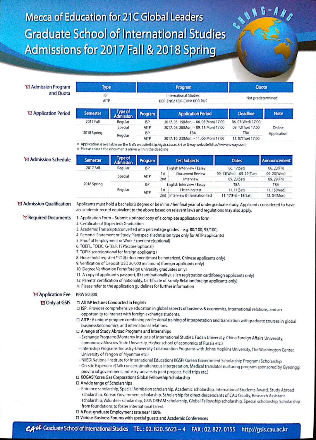 韩国中央大学:GSIS website: http//gsis.cau.ac.kr