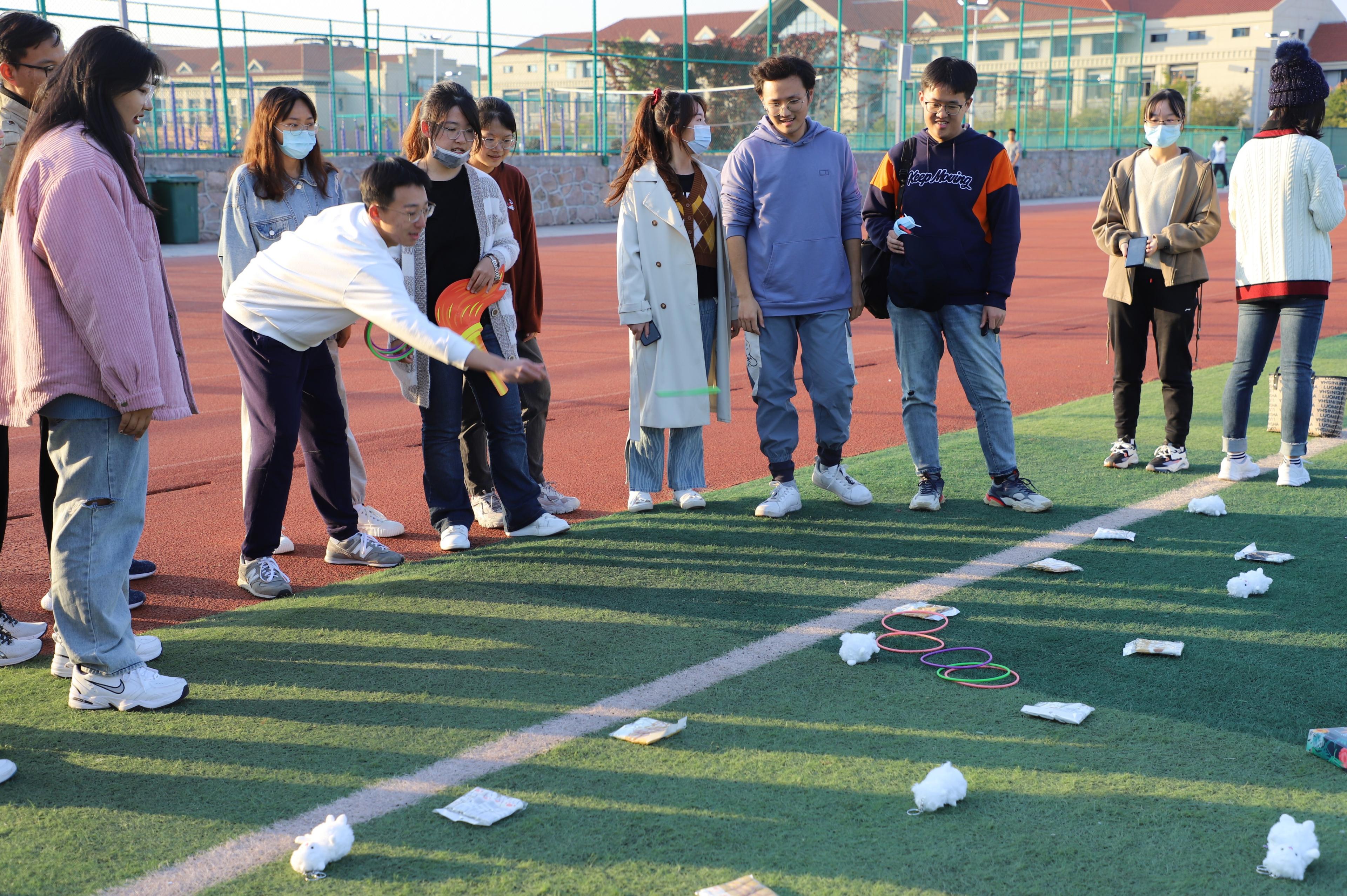 活动开始前,不少同学已经提前到达操场,进行比赛前的热身。在“套圈”项目前,同学们忍住不小试身手,现场不时传来喝彩声和欢呼声。这缓解了比赛开始前紧张的气氛,营造了积极向上的比赛环境,彰显了同学们的青春朝气。