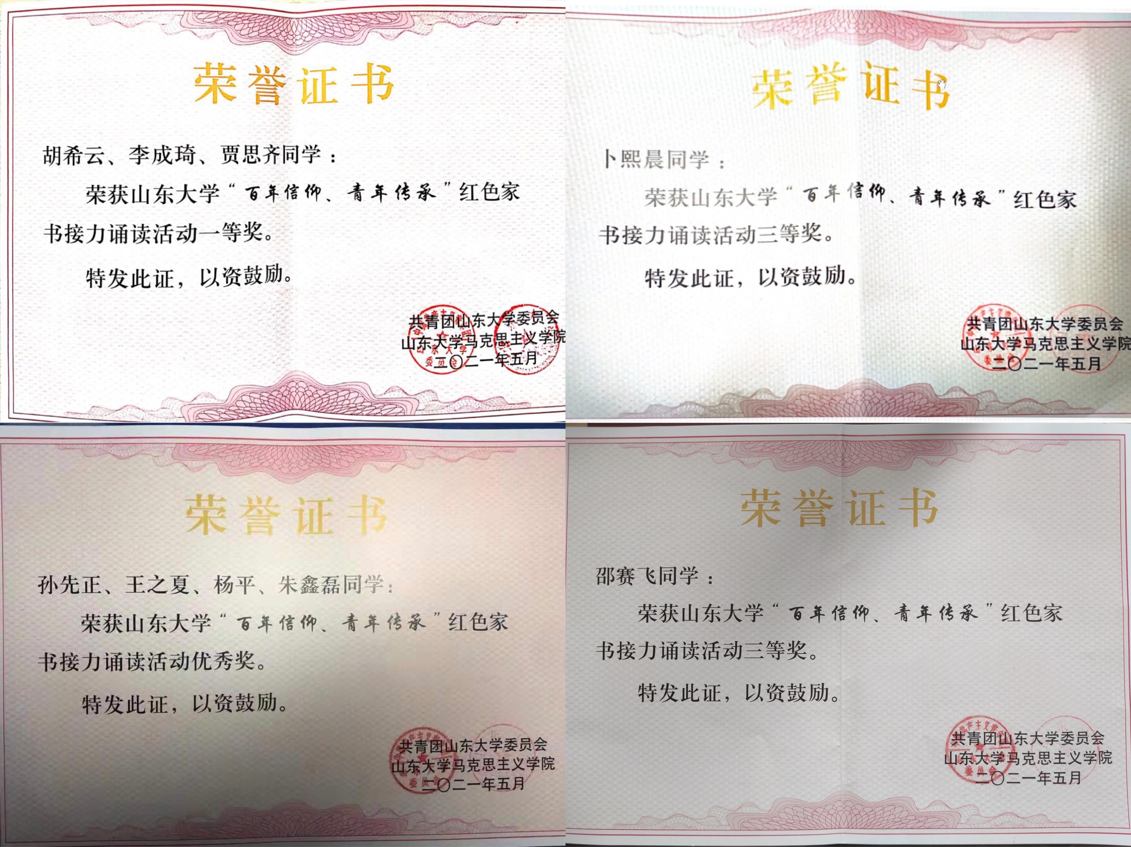 “百年信仰,青年传承”红色家书接力诵读活动中,我院胡希云团队获一等奖,邵塞飞团队、卜熙晨团队获三等奖;部分团队获优秀奖;