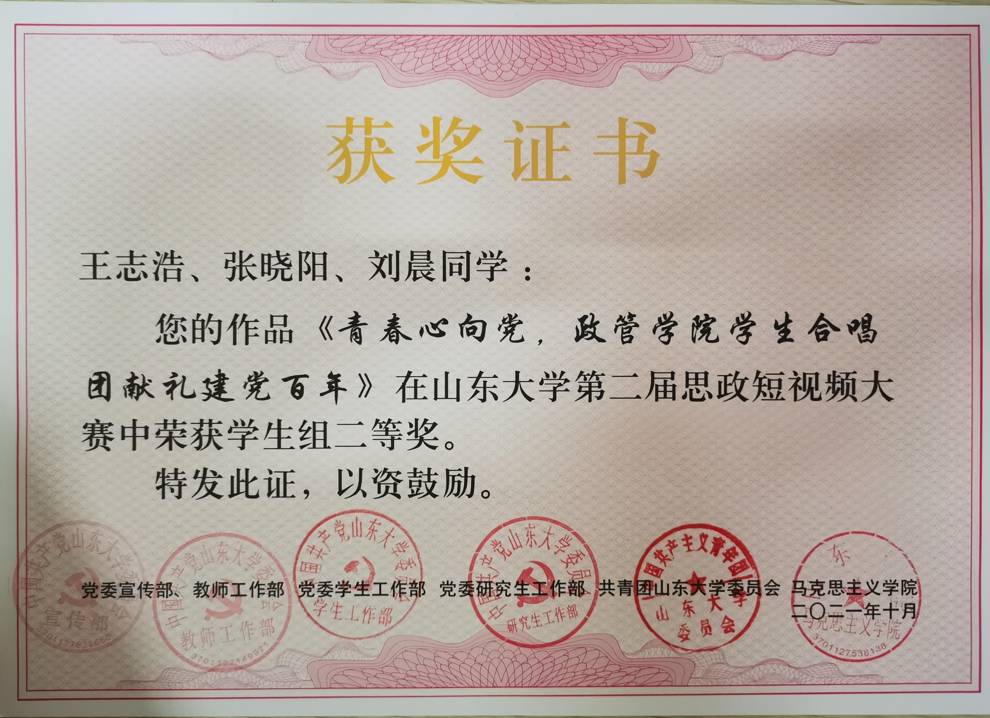 学生合唱团献礼建党百年》获二等奖,苗英荟团队的作品《于人曰,浩然》获二等奖;