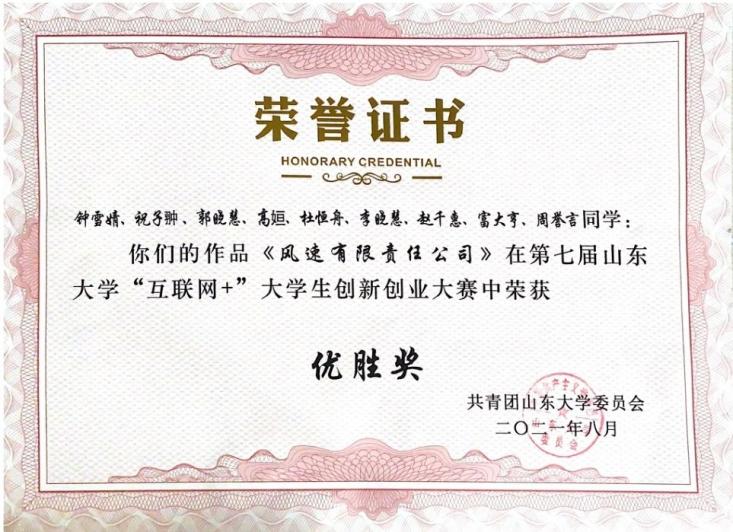 “互联网+”大学生创新创业大赛中,钟雪婧团队获得优胜奖。
