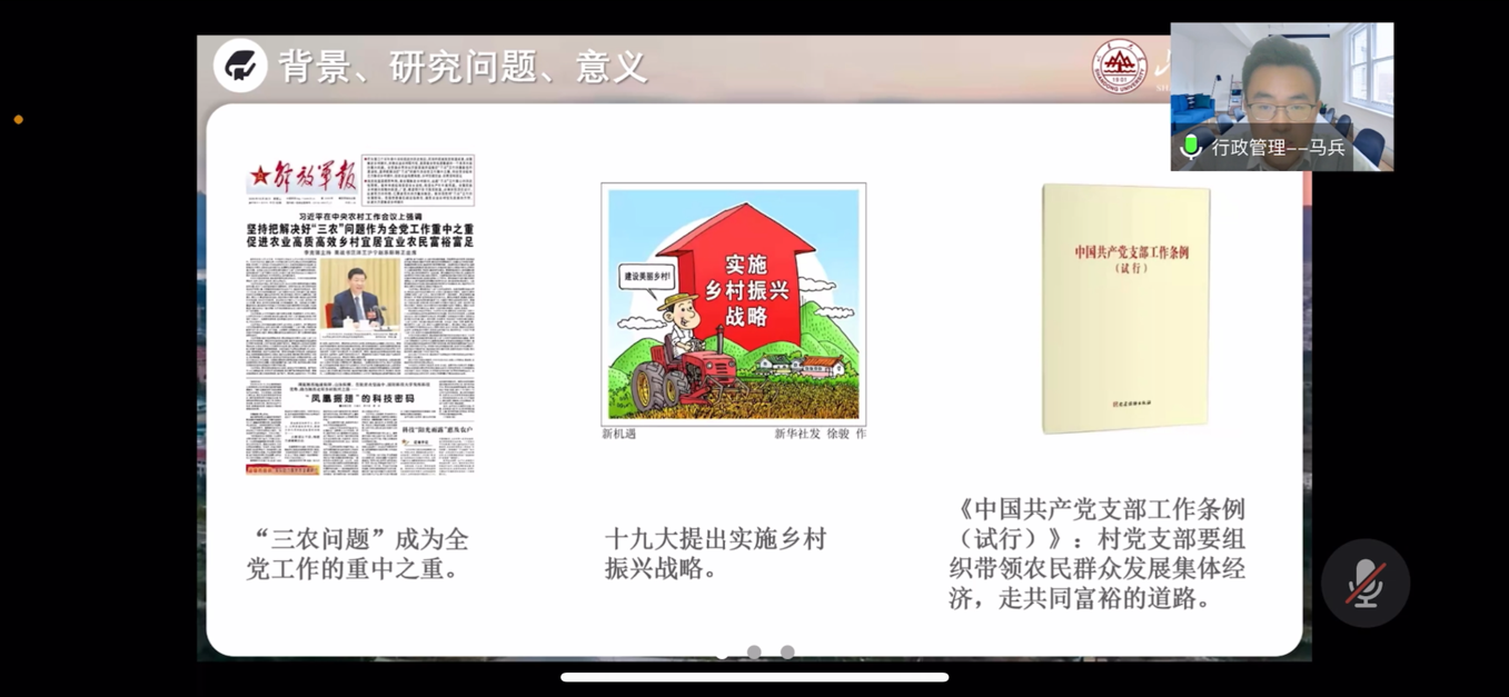 应防疫政策要求,本次寒假社会实践结项答辩会采取线上答辩的形式。答辩主要包括实践展示与评委点评两个环节,最终根据评委打分结果评选出优秀团队。答辩开始前,主持人就本次答辩会的主题、答辩规则以及流程做出了细致介绍。随后,各队代表有条不紊地进行了项目汇报,他们分别聚焦基层党建、乡村振兴、政企合作、应急管理以及十九届六中全会精神宣讲等热点话题,用精炼的语言加以生动的讲解,充分展现了小组实践成果。