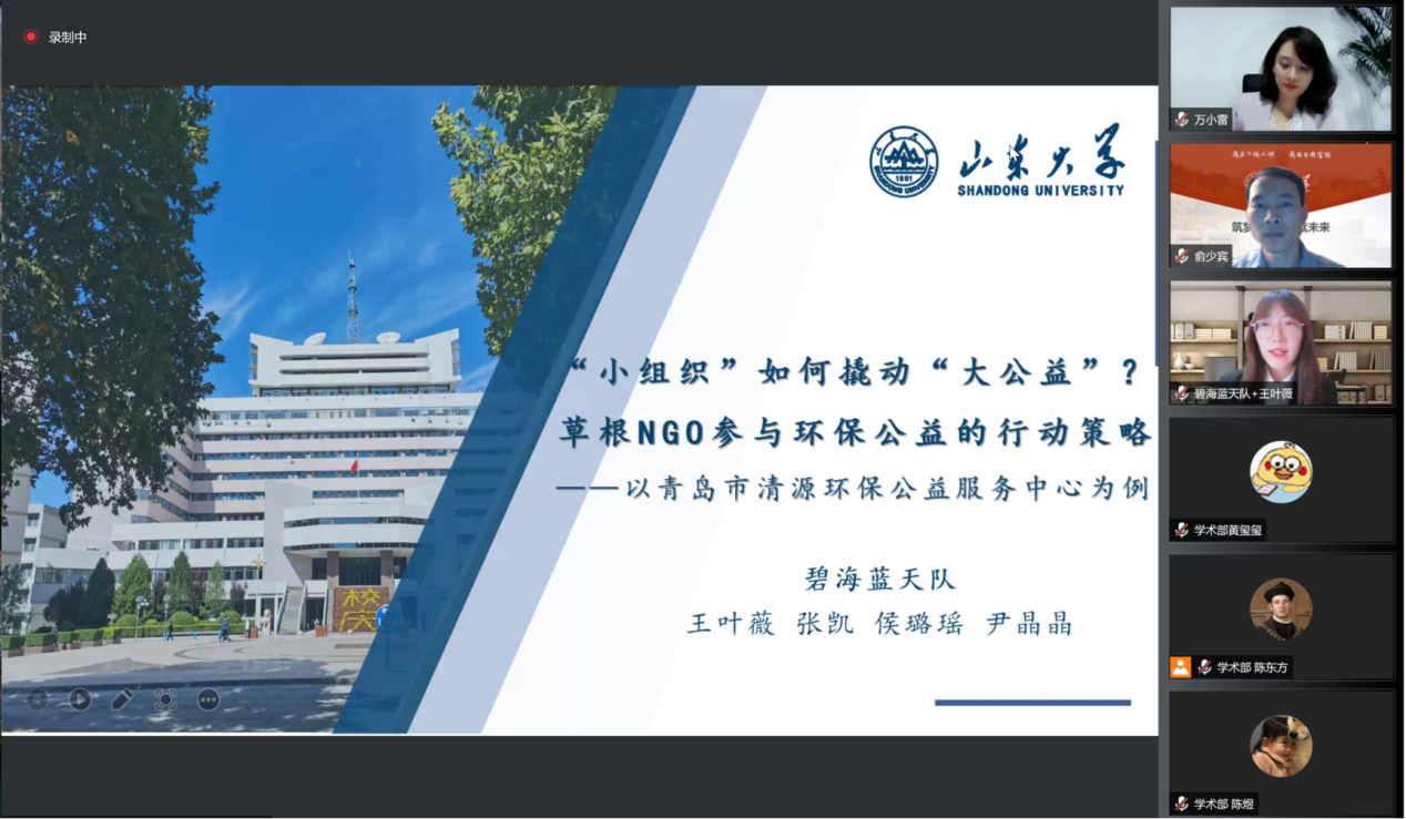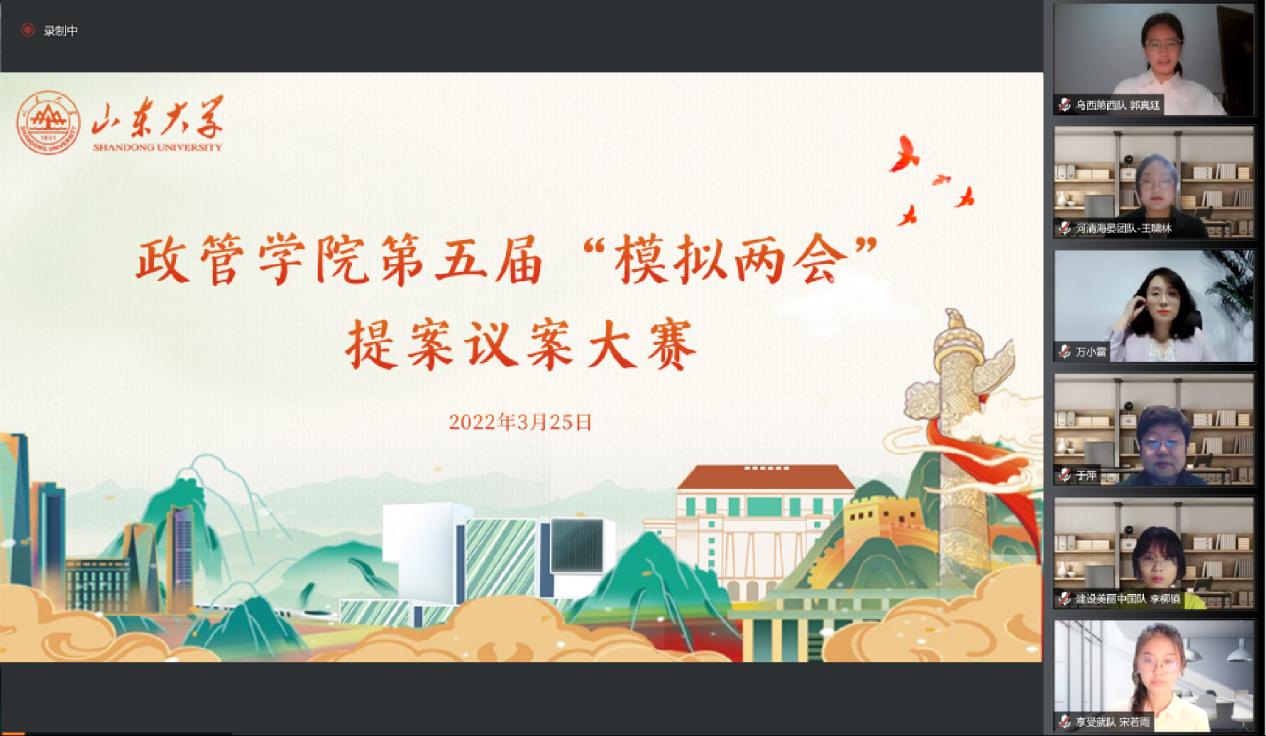 根据疫情防控要求,本次大赛在线上举行。参赛的8支团队模拟人大代表和政协委员,或聚焦国家社会中的民生发展议题,或关注校园中的学习生活话题,结合实地调研,提出了很多兼具深度和温度的提案议案。来自济南校区的“享受就队”关注山东省公共图书馆事业,提出了进一步提升全省图书馆建设管理水平和服务质量的建议。来自青岛校区的“时光代理人队”聚焦养老话题,针对“时间银行”互助养老模式提出建议。来自威海校区的“泉力以赴调研团”关注济南市文旅产业,聚焦进一步推动济南高质量发展提出优化建议。各支团队的精彩表现向评委和观众们表现出新时代青年关心公共治理的担当和责任,展示了政管学子向上的青春风采。