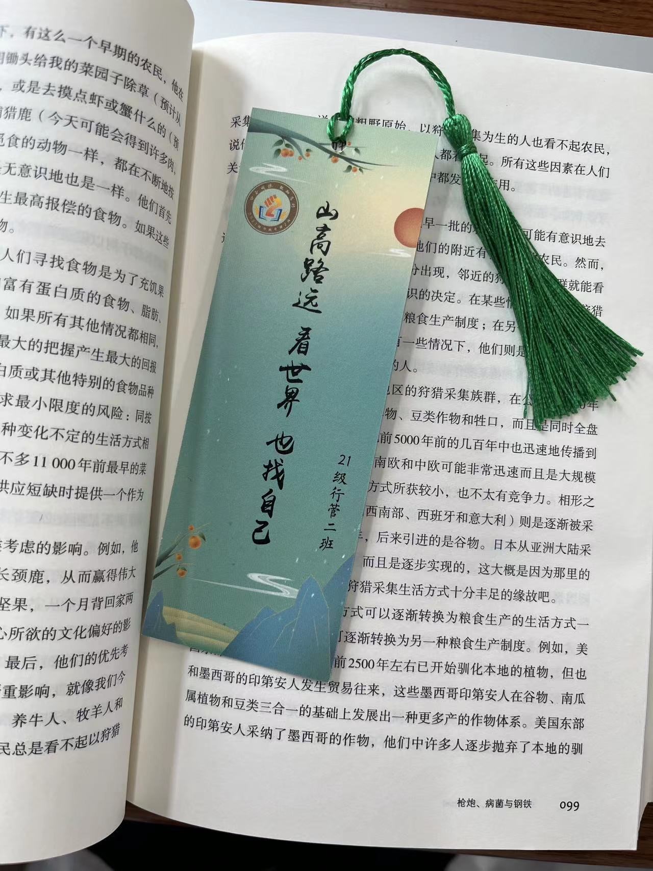 会议最后,由班长和学习委员将具有班徽、班级寄语的自制书签发给每一位同学。山高路远,看世界,也找自己。21级行政管理二班在“读万卷书,行万里路”的成长旅途中汲取阅读的力量,去发现未知而闪光自己。
