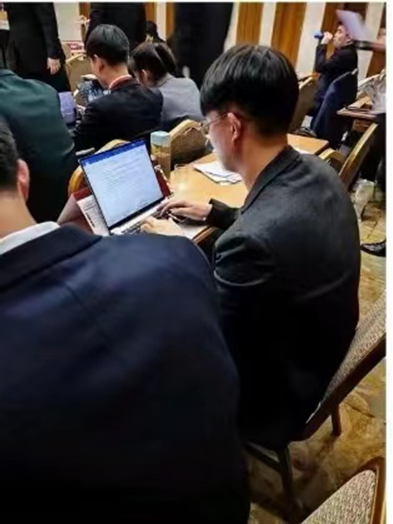 参会的5位同学分属三个会场,曲子寰和李永昌作为法国代表出席联合国安理会会议,为防止恐怖分子获取大规模杀伤性武器做出杰出贡献;李佳萱和宋若雨作为法国代表出席联合国大会会议,为推进防止饥荒和粮食不安全问题贡献优秀方案;黄琳雅作为阿根廷代表出席联合国人权理事会会议,为流离失所女性的经济安全制定有效措施。