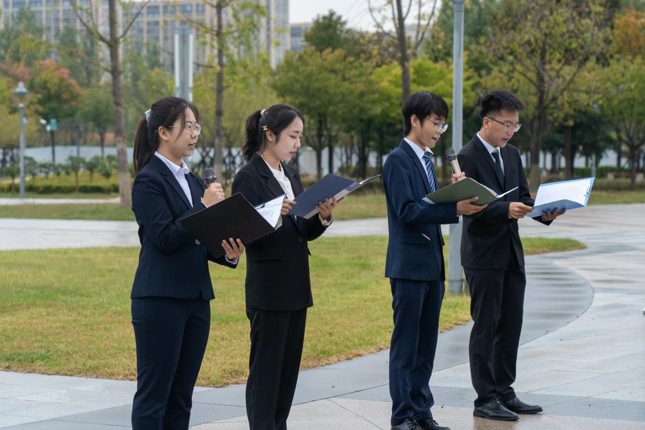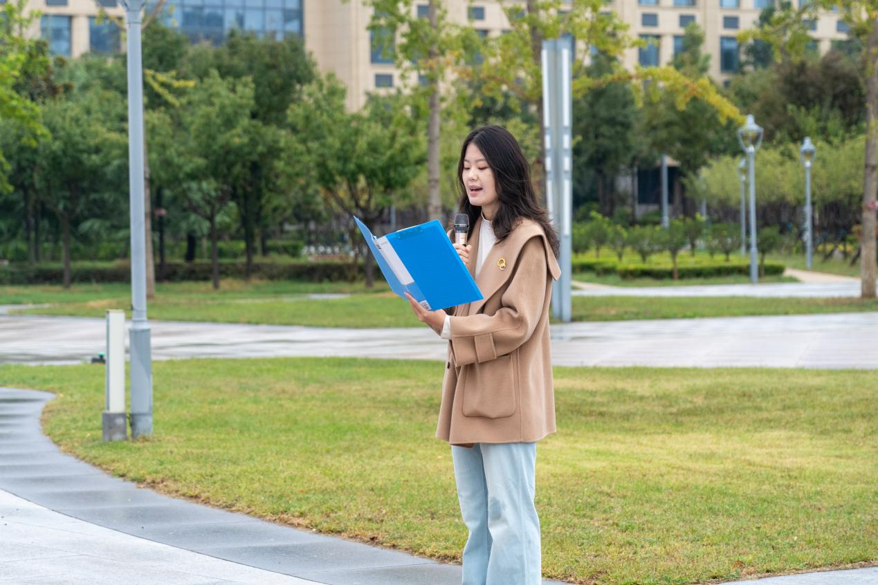 2021级本科生宋若雨作国旗下演讲。宋若雨回顾了新民主主义革命时期党带领群众英勇地推翻帝国主义、封建主义和官僚资本主义这三座大山的历史。这些前辈们不仅以血肉之躯筑起了革命的丰碑,更以坚定的信仰、不屈的意志和无私的奉献,铸就了伟大的革命精神。