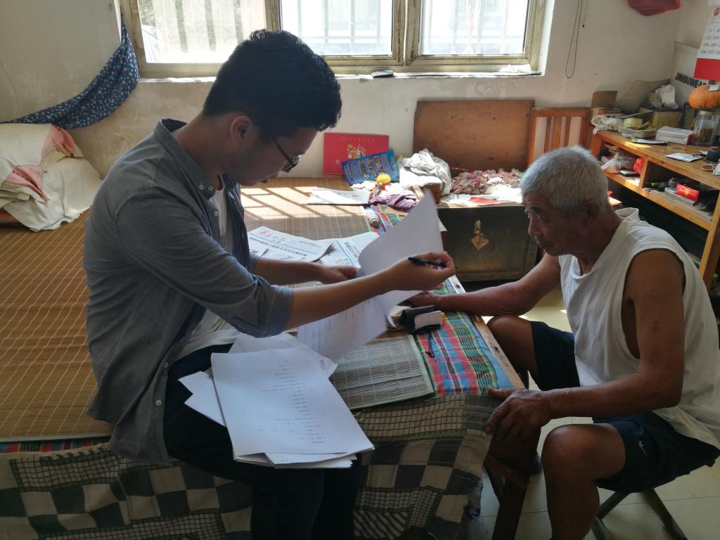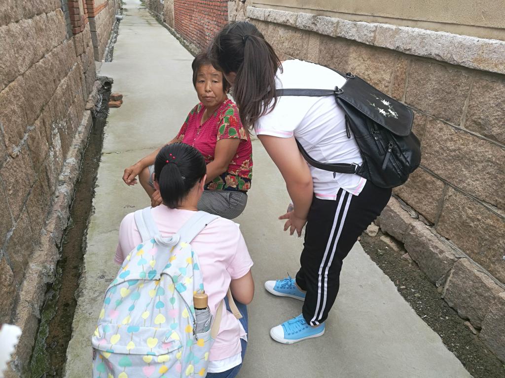 上午的采访进展顺利。中午队员们在村内一家小卖部稍作休息时,小卖部老板非常热心地填写了问卷并向队员们讲述了自己生活的状况。午后由于大多数村民都在午休,所以发放问卷的进度有所下降。但仍然有没有在午休的老人非常热心地填写问卷。临近傍晚,一些大爷大妈们陆续从家中出来,队员们随即对他们进行了问卷调查。