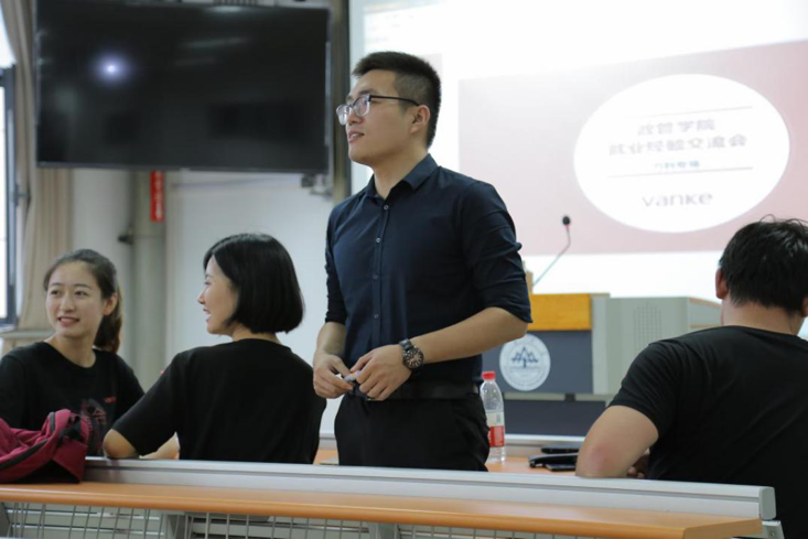 就业经验交流会万科专场在青岛校区振声苑e201教室顺利举办。来自万科集团的4位特邀嘉宾就不同方面的就业问题与同学们进行了交流。