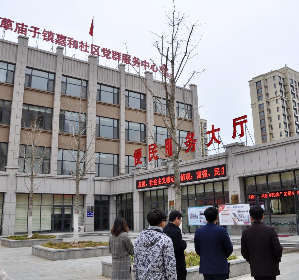 草庙子镇嘉和社区是威海市最大的回迁社区,在社区工作人员引导下,同学们参观了残疾人康复站、图书室、养老服务中心、舞蹈室等居民活动场所,亲身感受到“撤村并居”后嘉和社区在党群共建方面所做出的探索和努力。在党员活动室,区组织部副部长吴军建、镇长曲兆文、副镇长张晓玲等结合当地实际情况介绍了当前党建工作的新形势新特点以及工作思路和具体方法,并就同学们关心的问题作出回应解答。“随着城镇化进程的加快,我们的工作重点从农村党建开始转向非公企业和社区党建,除了坚持做好‘两学一做’和‘三会一课’等常态化学习外,还逐渐摸索出了‘组织攀亲、支部结亲、党员走亲’这样一条行之有效的工作路径……”谈起基层工作,他们的眼里闪着光。