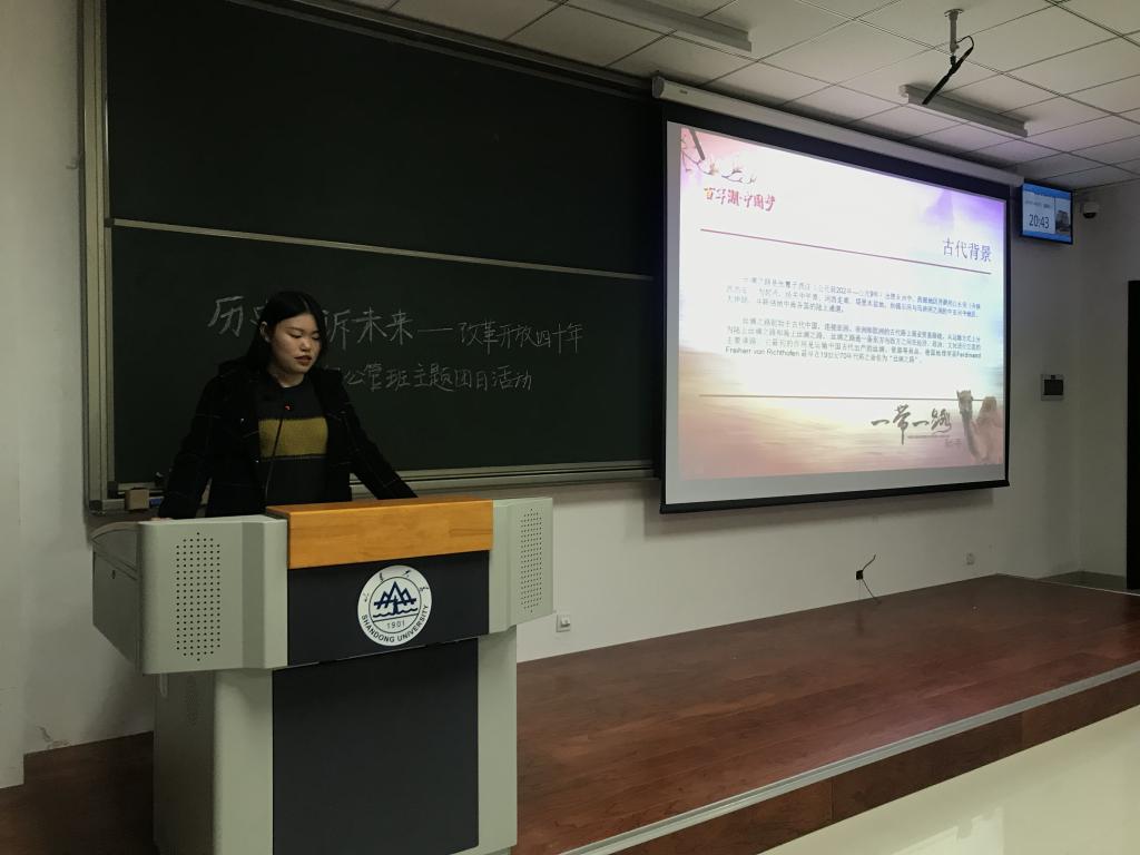 2017级公共管理班在振声苑举行“让历史告诉未来——改革开放四十周年”视频分享会。公共班全体同学参加会议,会议由团组织宣传委员耿易主持。
