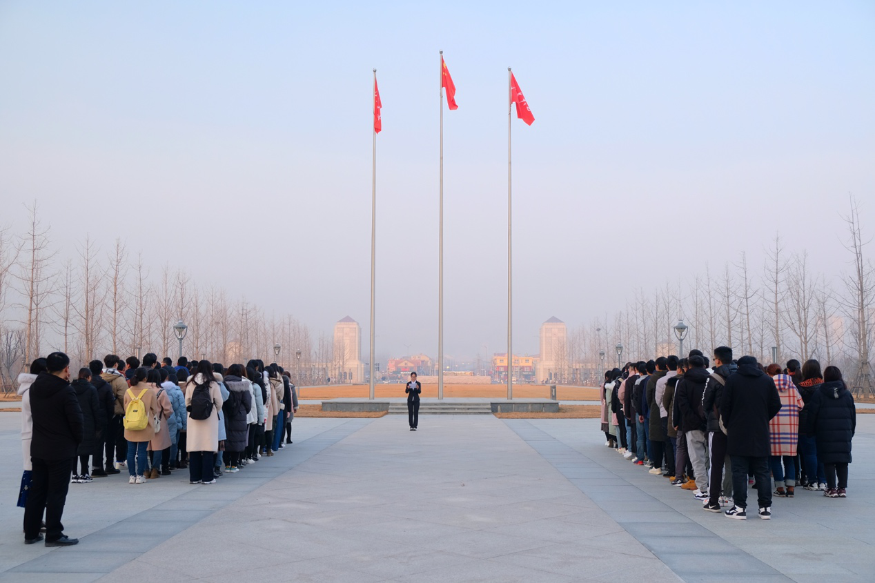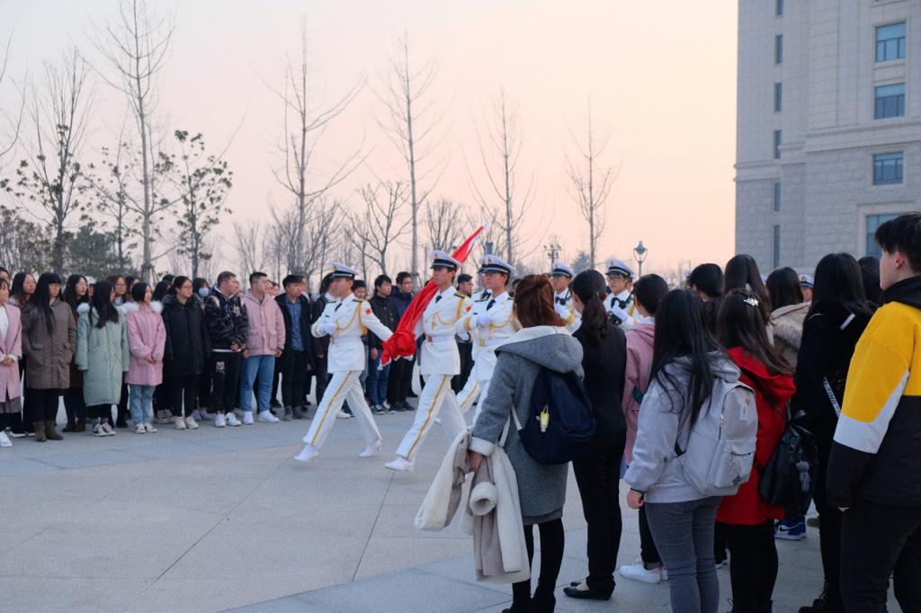 青岛校区新学期第一次升国旗仪式在育贤广场举行。69成人小说