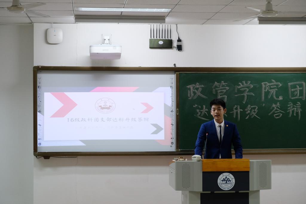 首先,2016级国际政治班团支部进行答辩,他们以“无问西东”为主题,阐释了其思想、热爱、初心与深情。2016级政科班团支部以PPT展示的形式总结其支部的工作,团结温暖的支部氛围给评委和观众们留下了深刻印象。2016级行政管理班团支部运用快闪的新颖形式,将工作成果一一展示,吸引了各位评委和观众的注意力。其后,2016级公共管理班团支部对其工作的成果与不足之处进行了总结,展现了其团支部严谨作风和认真的工作态度。2017级政治班团支部将优美的古诗与人、事、情相关联,绘出独一无二的支部风采,让人耳目一新。其他团支部也就其各方面工作进行展示,顺利完成答辩。