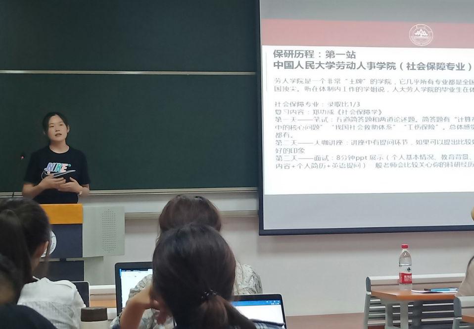荣周继萱则根据自己的考研经历,分析了如何在考研与保研中作出选择,进而分享了考研复习策略与注意事项,并且对考研过程中的各种选择给出了建议。在具体的考研科目上,分享了英语与政治的备考方法。此外,还着重讲述了跨考法硕的策略。