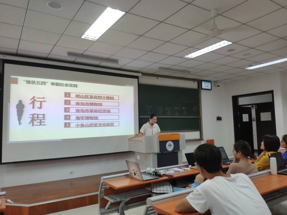 由于暑期假期较长,大部分同学都开展了一项或多项的社会实践活动,并形成全面详细的社会实践报告,记录了实践体会心得。会议上,同学们展示的实践成果也是别有风采。孙立双同学向大家分享了青岛市慈善超市生存现状的研究;陈颖同学以“王哥庄大馒头”为例,分享了乡村振兴视域下特色产业区域公用品牌建设路径的研究;高楚曦同学用视频的形式分享了在尼泊尔支教的实践经历;巫佳敏、耿易和荆琳等同学则参加了个人岗位体验,在获得社会经验的同时,加深了对社会的认识和思考,达到了良好的预期实践效果。交流经验过程中气氛轻松愉快,现场不时爆发出热烈的掌声和欢笑声。
