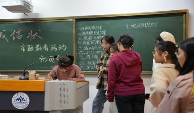 活动最后,举行了签署仪式,同学们依次上台,进行签字。本次主题教育活动在“言必信,行必果,我打卡,我快乐”的宣誓声中圆满结束。