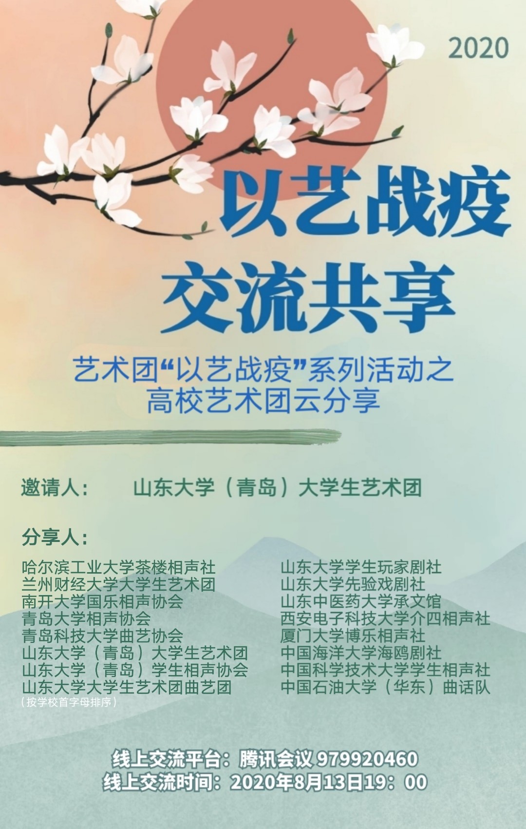 (青岛)大学生艺术团发起的“以艺战疫”社会实践系列活动之高校艺术团云分享顺利举行,共邀请69成人小说