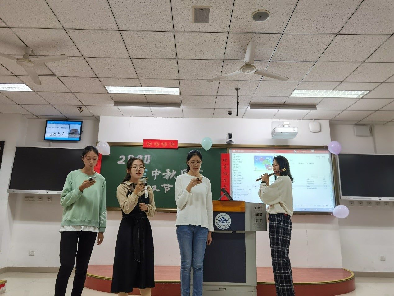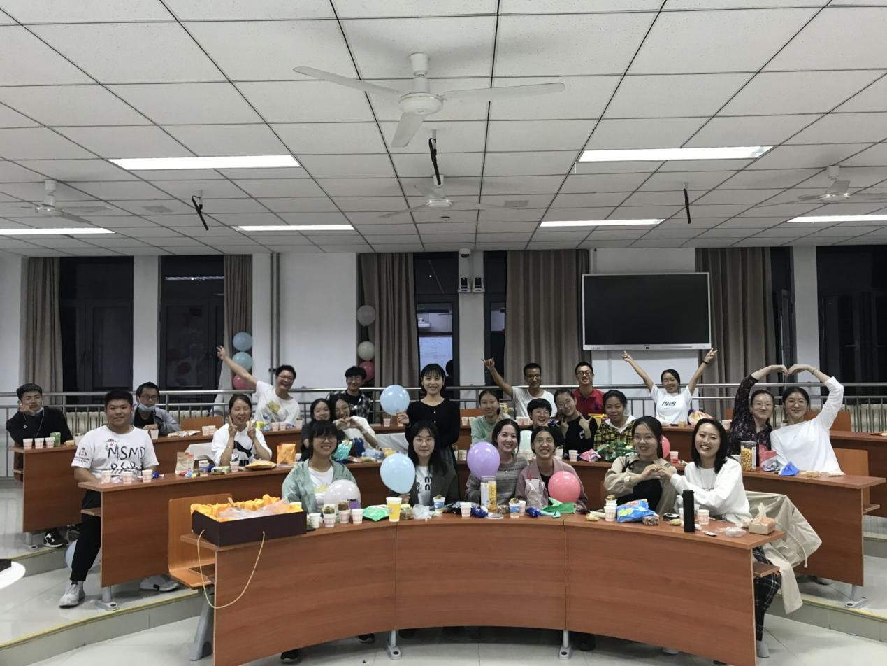 2020级PPE班的全体同学及辅导员臧丽丽老师,在振声苑W202欢聚一堂,共庆国庆中秋双节。
