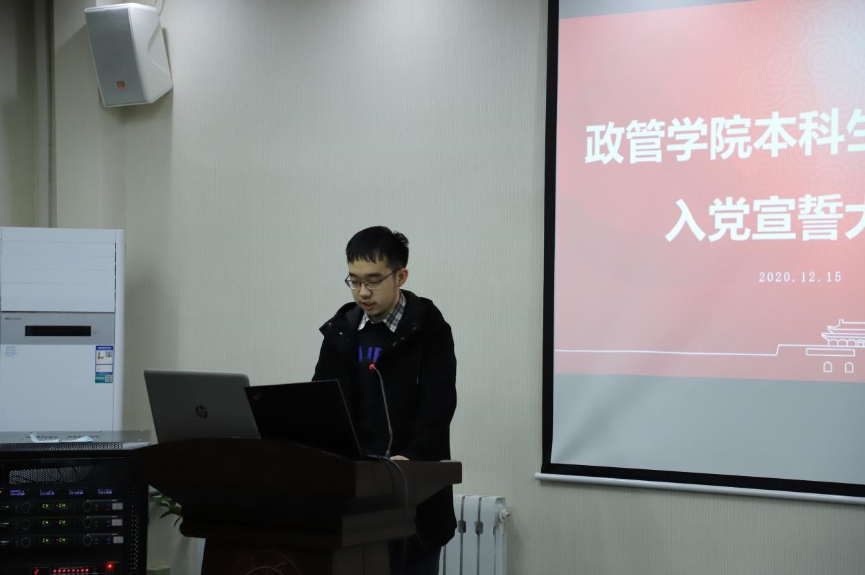本科生党支部对新发展的17名党员进行入党宣誓教育,大会由本科生党支部组宣委员王君宇主持。