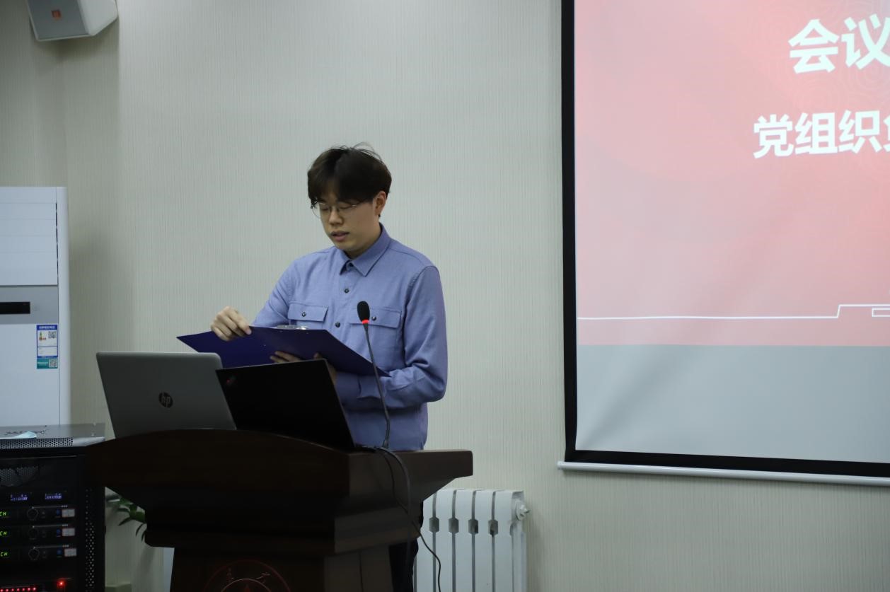 党员的发展情况并宣布此次会议的议题。接着,现场党员合唱《国际歌》,并在王君宇的带领下面向党旗庄严宣誓,表达不忘初心跟党走的信念和决心。