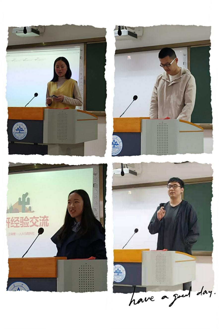 科学社会主义专业考研经验交流会在振声苑东楼206如期举行。本次会议由赵婷老师主持,邀请到了17级四位考研成功的学长学姐,18级、19级共21名学生参加了本次交流分享会。