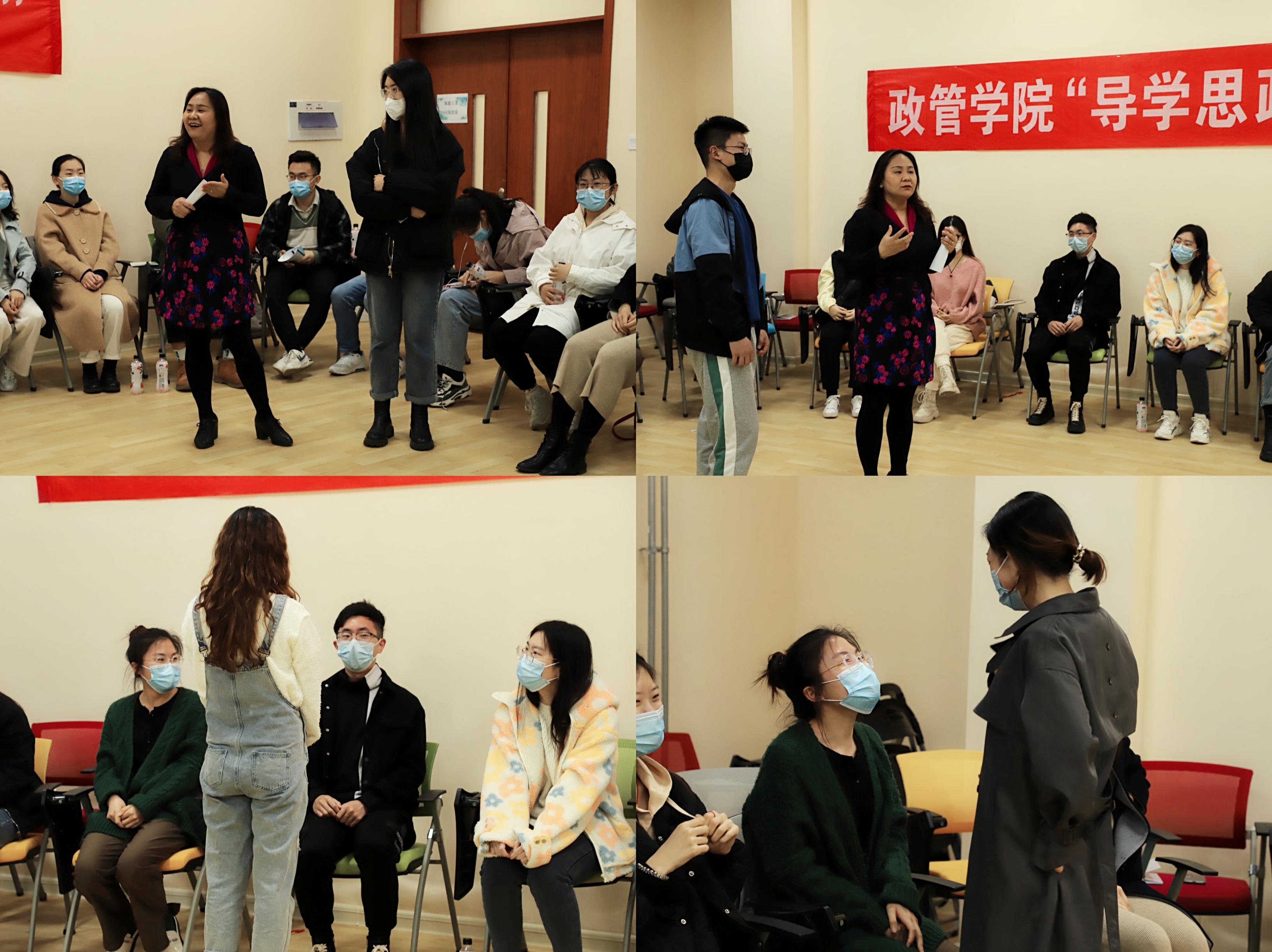 此次导学思政活动突破以往教学模式,师生围坐成圆形,面对面交流。沙龙以新颖的热身游戏拉开帷幕,有趣的一问一答拉近了同学之间的距离,现场氛围迅速活跃起来。