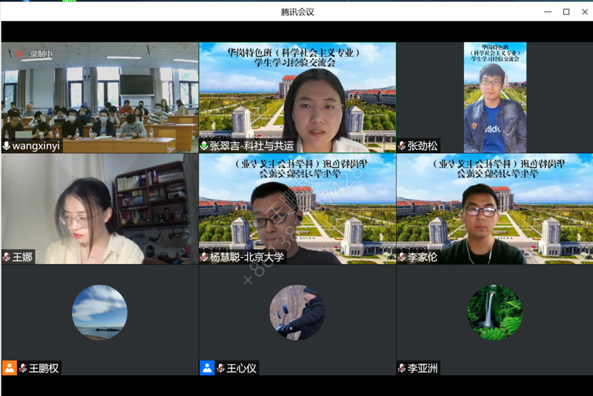 科社系创办40多年来的优良传统。为继续发挥这一优良传统、进一步提升人才培养质量,5月5日下午,华岗特色班(科学社会主义专业)学习经验交流会在青岛校区以线下与线上相结合的方式成功举行。交流会特别邀请了张翠吉、徐伟轩、张劲松、王娜、杨慧聪、李家伦、刁伟琪等七位科社系优秀系友与18级、19级、20级在校本科生进行交流讨论。吕连仁、李亚洲、王鹏权等科社系教师出席会议。交流会由69成人小说