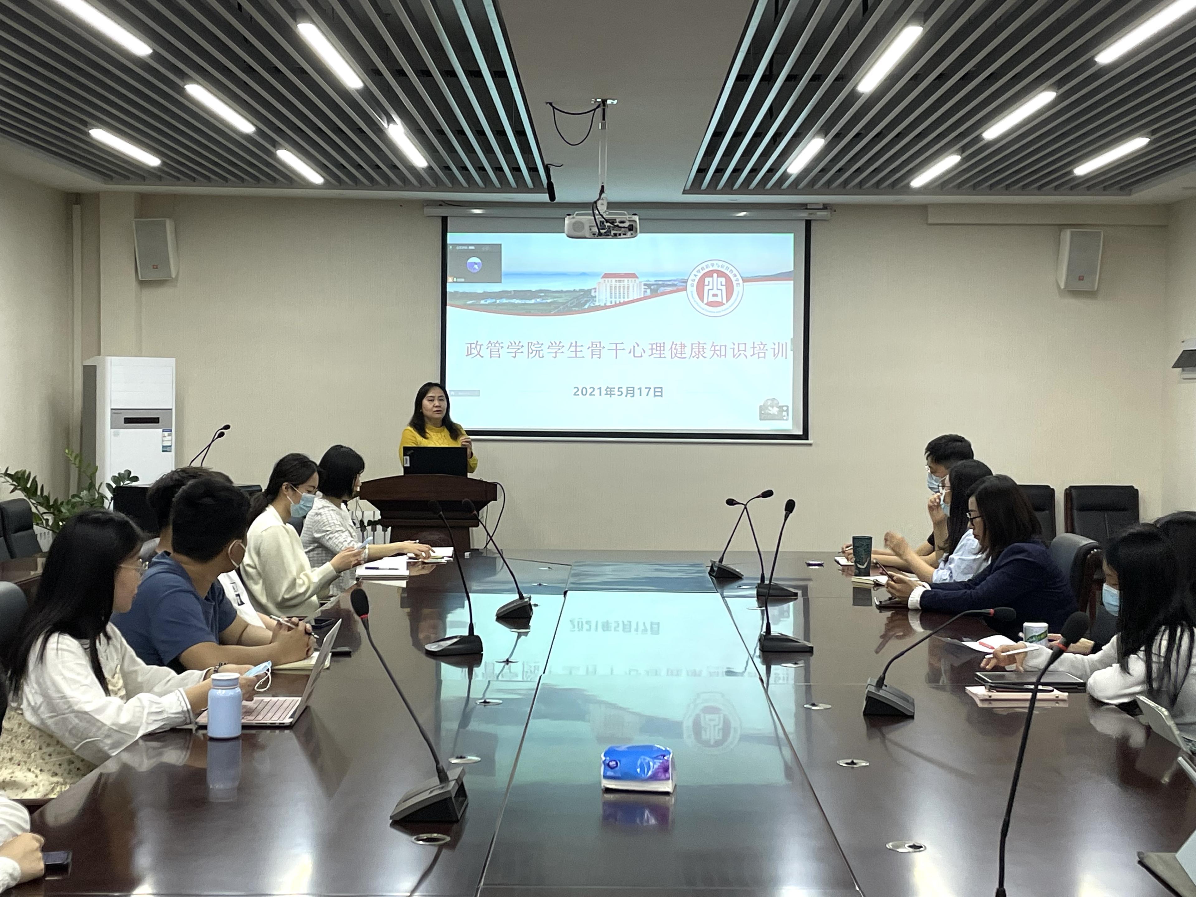 于华岗苑南楼436会议室开展学生骨干心理健康知识培训讲座。青岛校区学工部副部长李娟教授担任主讲,讲座面向班级心理委员和宿舍舍长,采取线上线下相结合的方式展开。院党委副书记马桂兰主持会议,院全体辅导员参与其中。