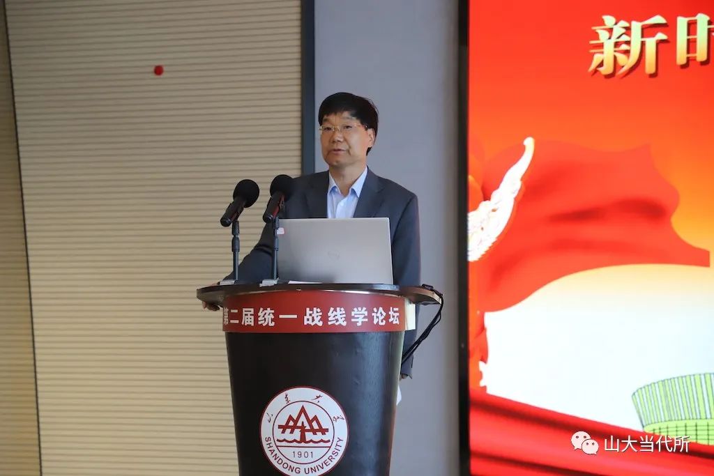 马克思主义学院教授王韶兴倡导积极构建中国自主的政党政治知识体系;湖南省社会主义学院教授周述杰分析了统一战线与全过程人民民主的逻辑契合与现实演绎;中共青岛市委统战部一级巡视员王振海认为,应加强对统战思维的研究与认知;浙江省社会主义学院一级巡视员张建明以浙江余杭小古城村“两众”实践样本为例,分析了“两众”式协商民主对全过程人民民主在基层的充分展开;中共山东省委党校教授谭建阐释了如何推进协商民主制度化、规范化、程序化的问题;湖南师范大学马克思主义学院教授李超民解读了“大统战”工作格局下如何加强网络人士统战工作;山东社会科学院马克思主义研究院研究员冯锋分享了他对新时代加强民营经济统战工作的思考;贵州师范大学教授张荣军阐述了如何用中华优秀传统文化赋能统一战线,以更好地服务于中国式现代化;山东省社会主义学院教授冯永昌围绕充分发挥新时代统一战线推进中华民族伟大复兴的法宝作用发表了自己的见解。