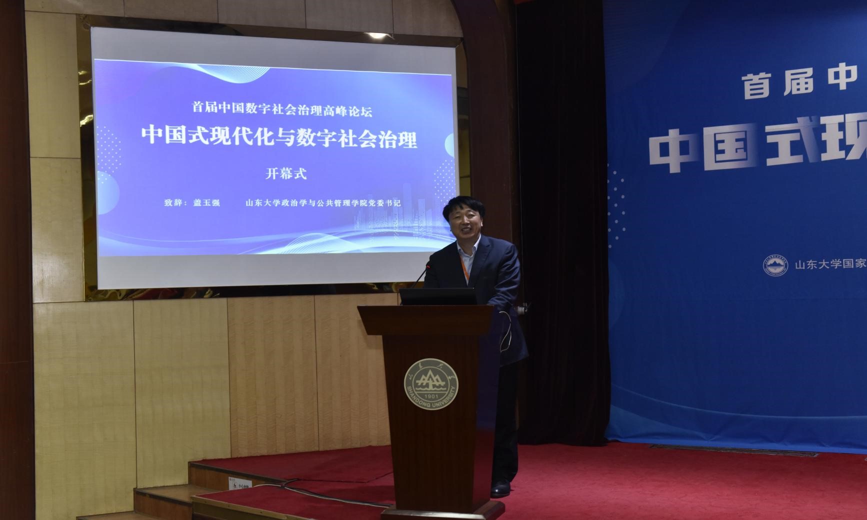 常务副院长马奔主持。四川大学公共管理学院原院长、四川大学城市治理研究院院长姜晓萍教授作了题为《数智社会治理的韧性构建》的报告,指出如何在数智时代淬炼社会治理的韧性,既是现实世界的“棘手问题”,也是公共管理的“大问题”,提出了数智赋能社会治理韧性的关键环境和五项策略。南京大学政府管理学院院长孔繁斌教授作了题为《数字社会治理:激发行为公共管理的研究》的报告,围绕行为科学领域视角下的治理行为展开,强调在数字社会治理过程中实现政府与公众之间信息交换的重要性。中国人民大学公共管理学院何艳玲教授作了题为《极速变化与专业立场:一个论纲》的报告,提出我国正处于市场化、全球化、互联网化的“三化共时态”发展状态,如何就政府与人民的关系看待中国治理结构的多重要素及其功能的重构,是公共管理学界需要高度关注的课题。清华大学社会科学学院副院长孟天广教授作了题为《数字化国家能力—国家治理数字化转型的信息逻辑》的报告,他指出数字时代的国家和社会是在数字技术赋能“国家”基础上的数字化国家治理结构优化和数字化国家能力生产过程,并提出我国应该着重围绕个体层面、社会层面和市场层面来丰富国家能力理论,以此综合构建提升数字化国家能力。济南市政法委副书记谢圣仁作了题为《数字赋能社会治理,塑强省会发展新优势》的报告,从技术创新、资源整合、部门协作等方面介绍了济南的社会治理创新实践。