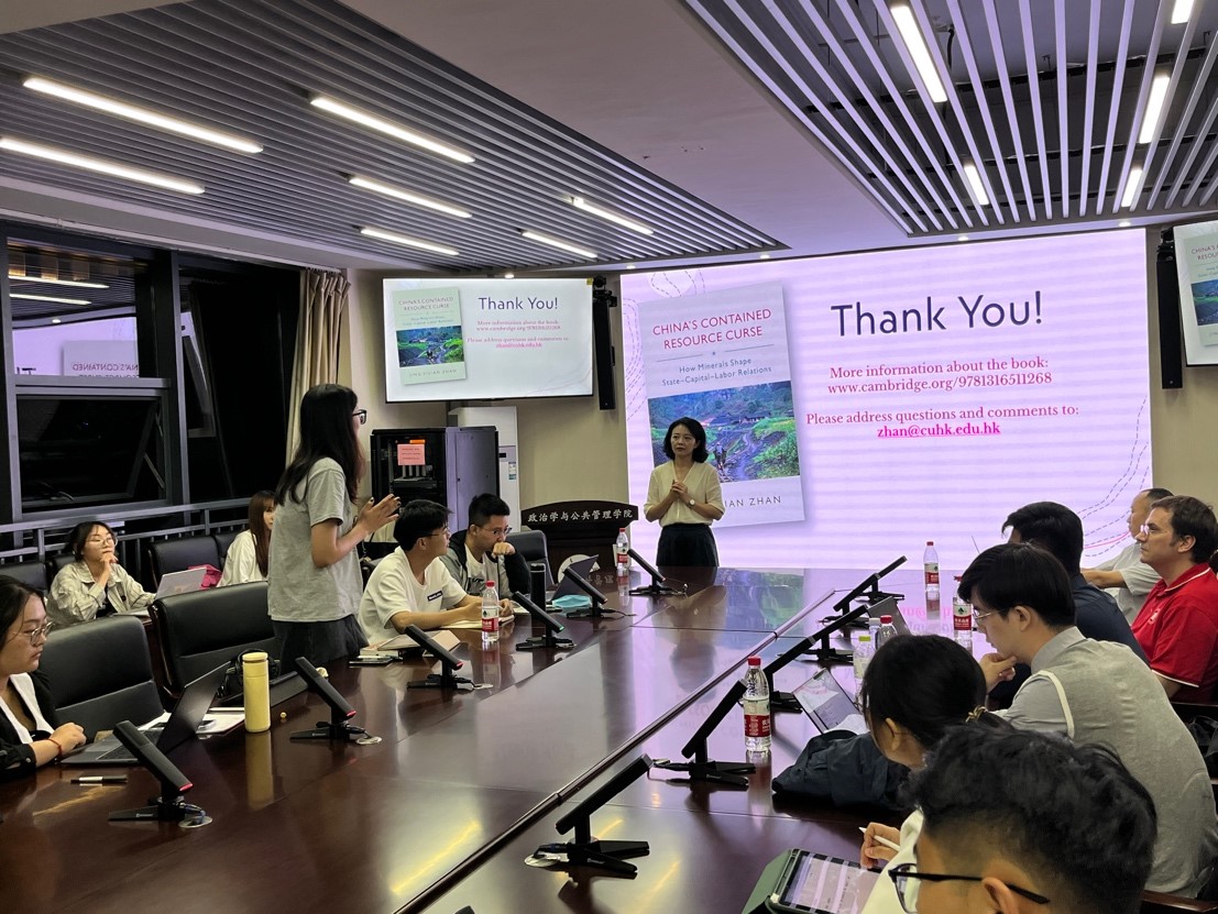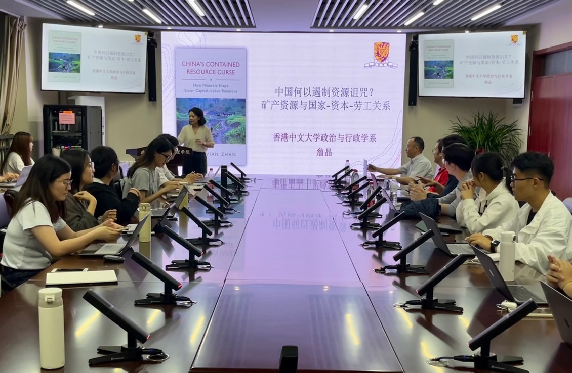 詹晶教授从研究缘起、研究方法、主要发现和研究总结四部分生动讲述其十余年的研究历程及成果。回顾中国的矿业经济发展,詹晶教授以“矿产资源对谁是一种诅咒,对谁是一种福祉”之问引出讲座主题,用扎实规范的田野调查和严谨翔实的量化数据论证矿产资源与国家-资本-劳工关系。随后其从四个方面对研究进行总结:第一,矿产资源的开发更有利于资本的发展,劳动力的发展则会受到损害;第二,矿产资源影响政府公共物品的供给;第三,资源财富会诱导地方政府产生腐败;第四,通过运用国家能力解决资源开采带来的负外部性。