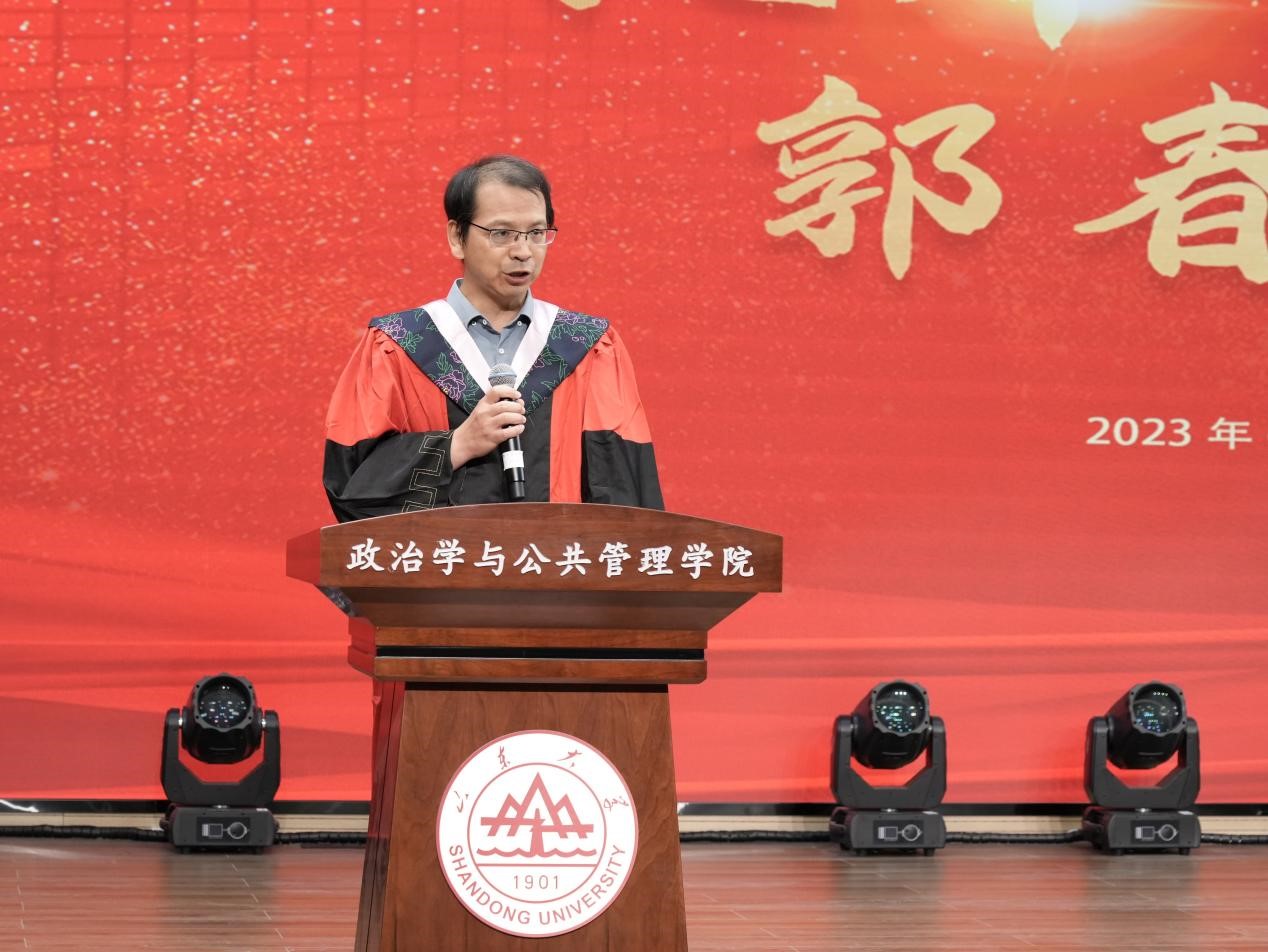 教师代表郭春生教授希望毕业学子在人生赛道上奋力前进,不负韶华、不负时代、不负国家和人民;做砥砺奋进、锐意创新的奋斗者,做脚踏实地、本领过硬的实干者、做胸怀家国、勇毅不惧的担当者。