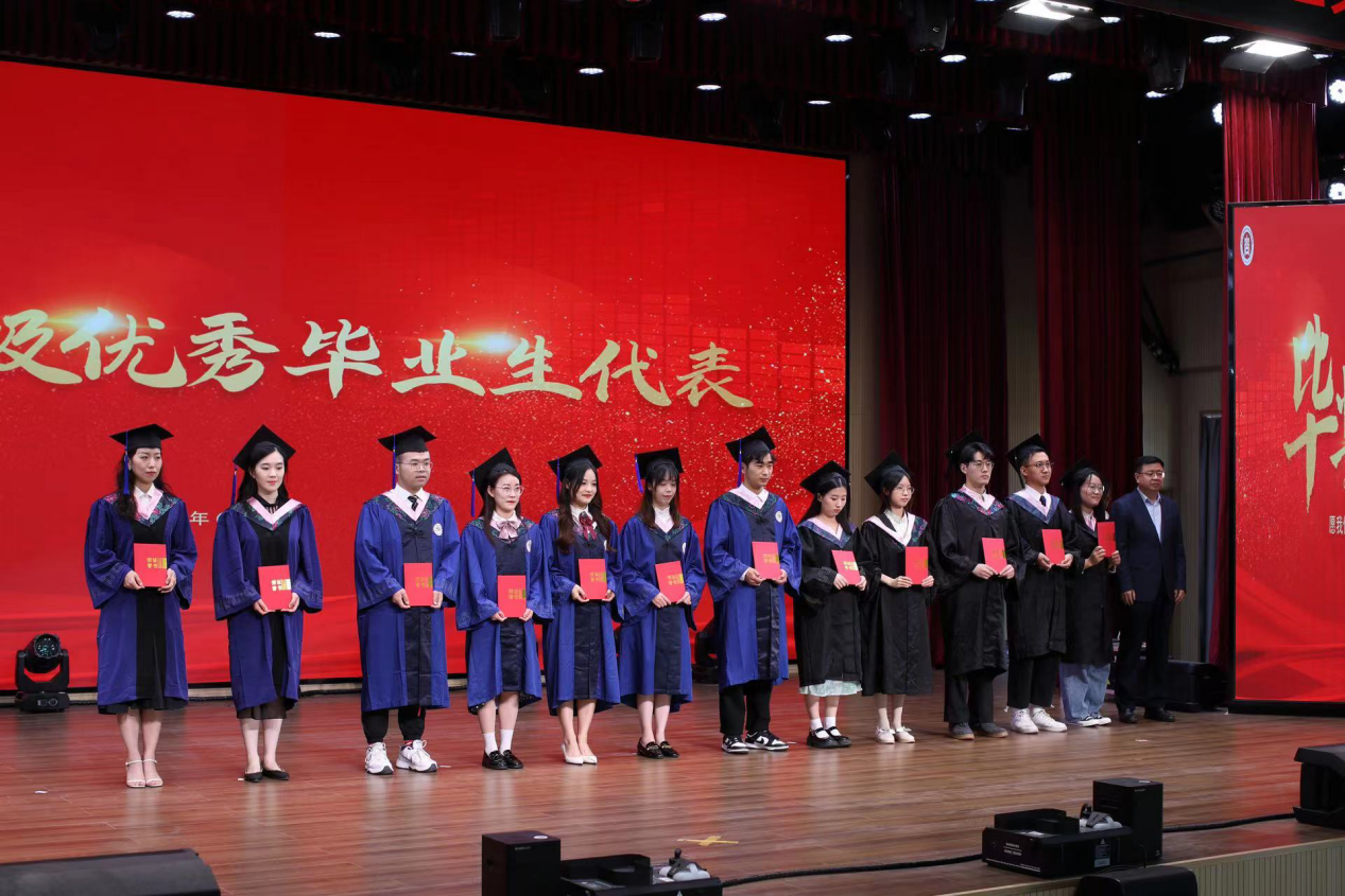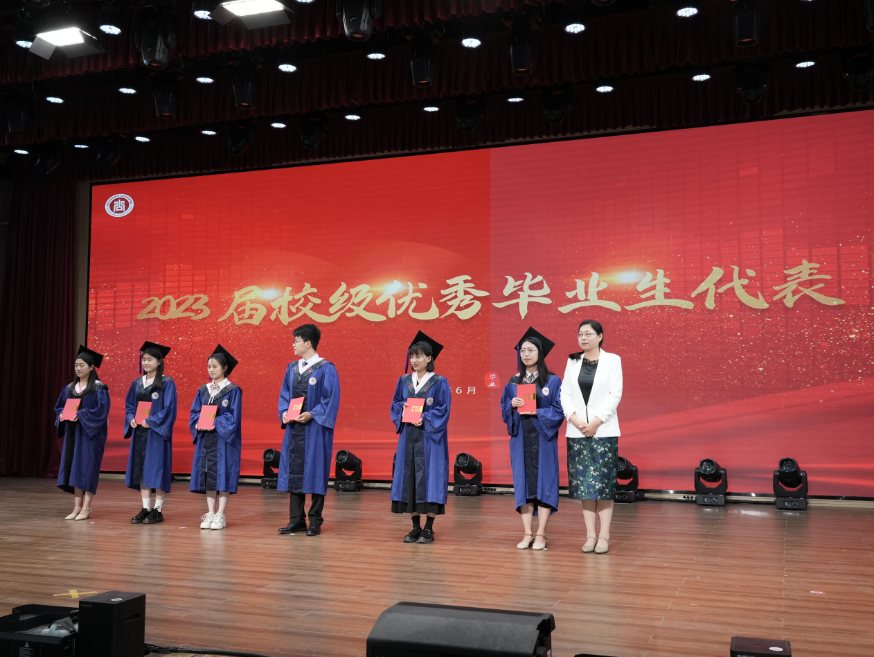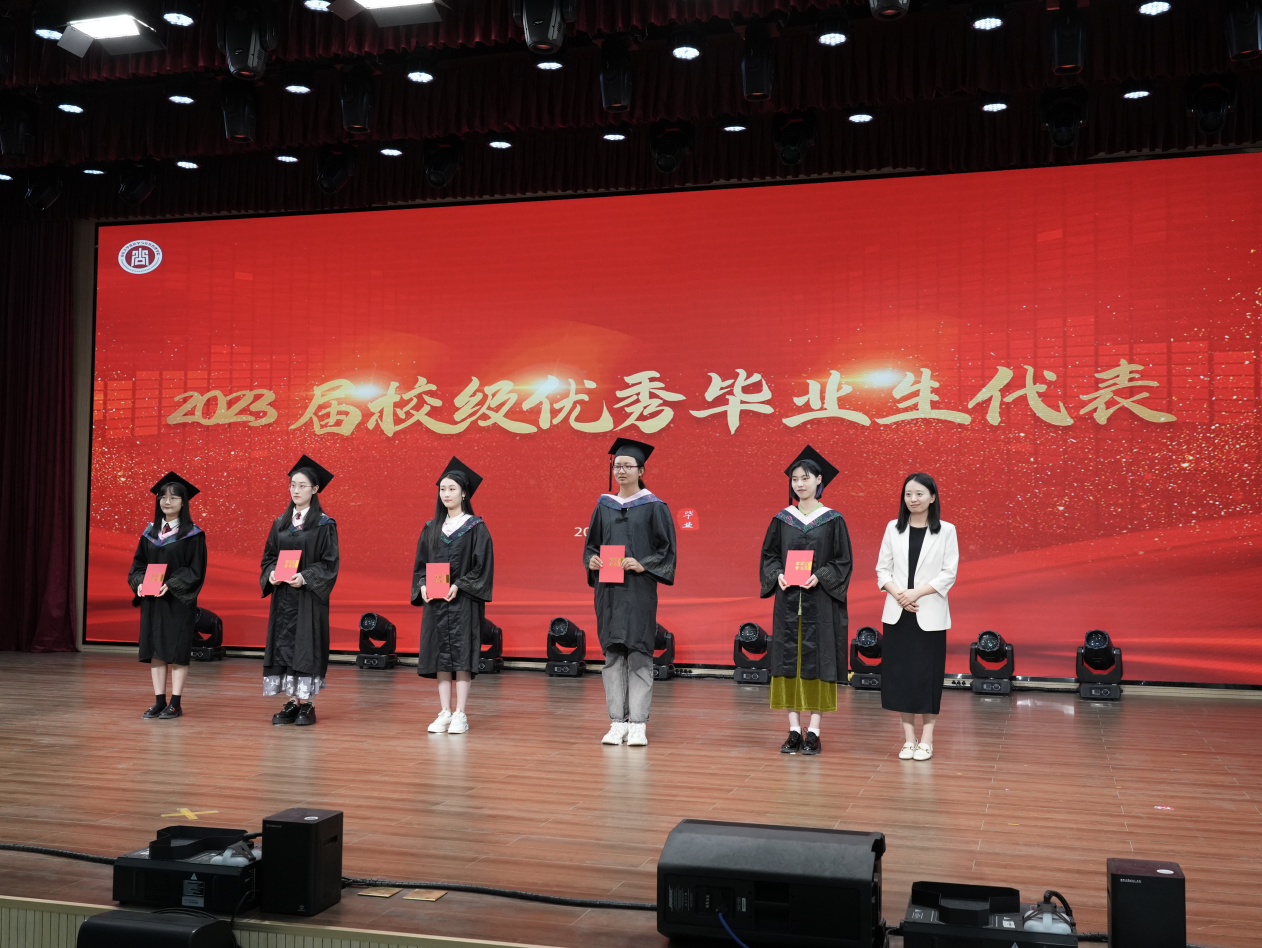 关于表彰2023届校级优秀毕业生的决定》,学院党委副书记石莹、学院副院长赵婷分别为2023届校级优秀研究生毕业生代表、2023届校级优秀本科生毕业生代表颁发获奖证书。