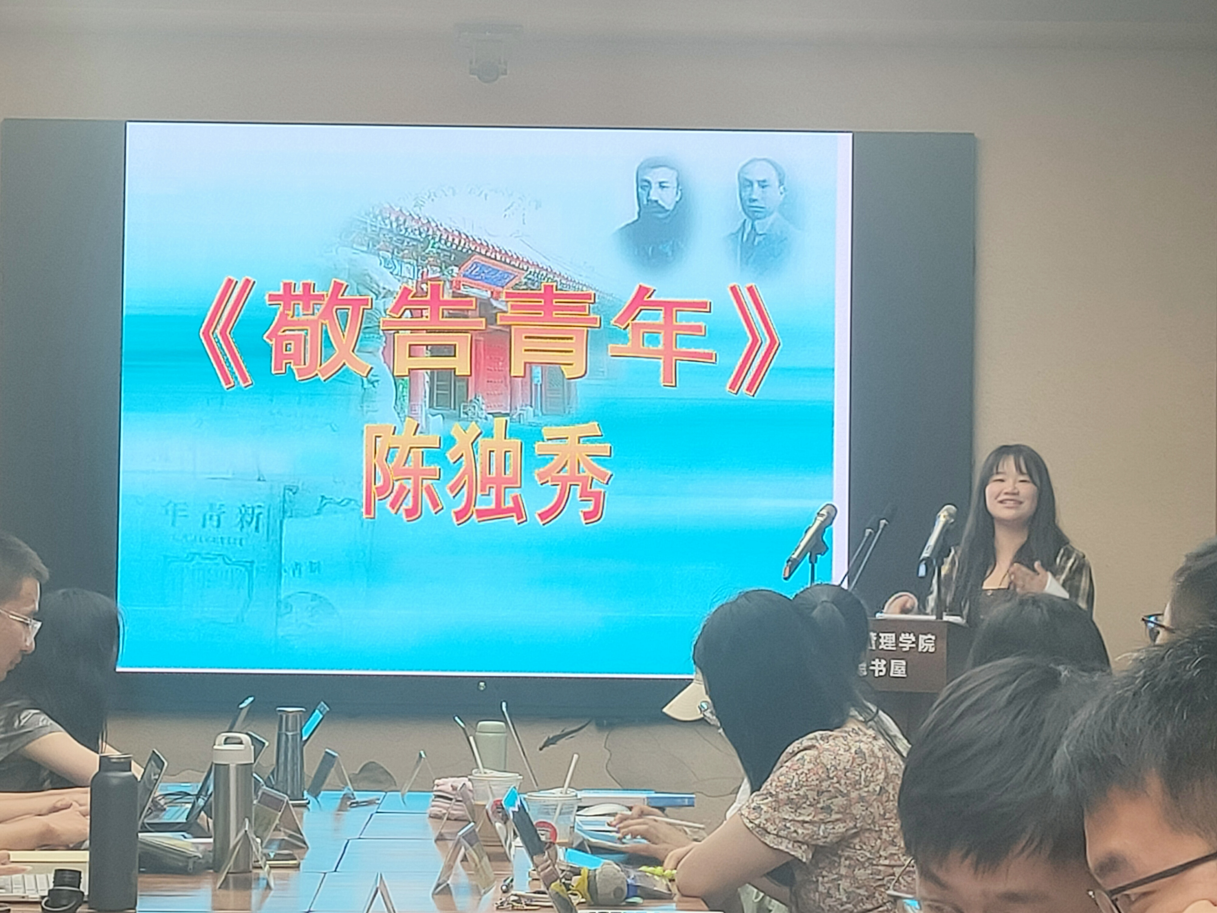 在此次读书会过程中,同学们围绕本期书目展开了主讲、点评与讨论。21级本科生马正伦梳理了《新民说》的主要内容,分析此书的写作背景,并从“变化”这一关键词入手引出了几个思考问题;21级本科生邱思琦主讲《敬告青年》,介绍了此书的写作背景与主要内容,从理论与现实两方面入手带领大家阅读此书。21级本科生王文欣和20级本科生由钊铭就主讲及书目内容进行点评,分享自己的见解。其他参会同学结合主讲人展示内容,围绕文本内容与现实环境等问题也进行了积极讨论。