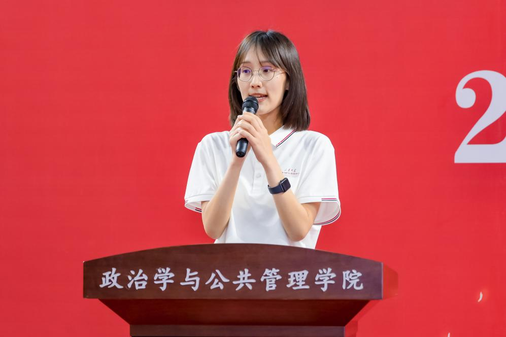 同时马奔对2023级新同学提出了三点希望:一是积极乐观、快乐成长。在面对成长带来的挑战和机遇,要心怀乐观、坚毅勇敢,不断追求内在的收获,并感受到知识的魅力和自我实现的喜悦;二是潜心研学、专业为本。既要有“天生我材必有用,千金散尽还复来”的学术自信,也要有“长风破浪会有时,直挂云帆济沧海”的学术壮志,还要有“衣带渐宽终不悔,为伊消得人憔悴”的学术热情,最重要的是要有“先天下之忧而忧,后天下之乐而乐”的学术情怀。要通过刻苦的学习和实践,培养自己的专业素养,建立坚实的学术基础和求知欲望,为将来的发展建立坚实的基础。三是心怀天下,全球视野。希望同学们能心怀天下,牢记山大“为天下储人才、为国家图富强”的办学宗旨和学院“知政为公,厚德笃行”的院训,培养开放思维,拓宽国际视野,积极参与国际交流与合作,为未来的全球事务作出积极贡献。