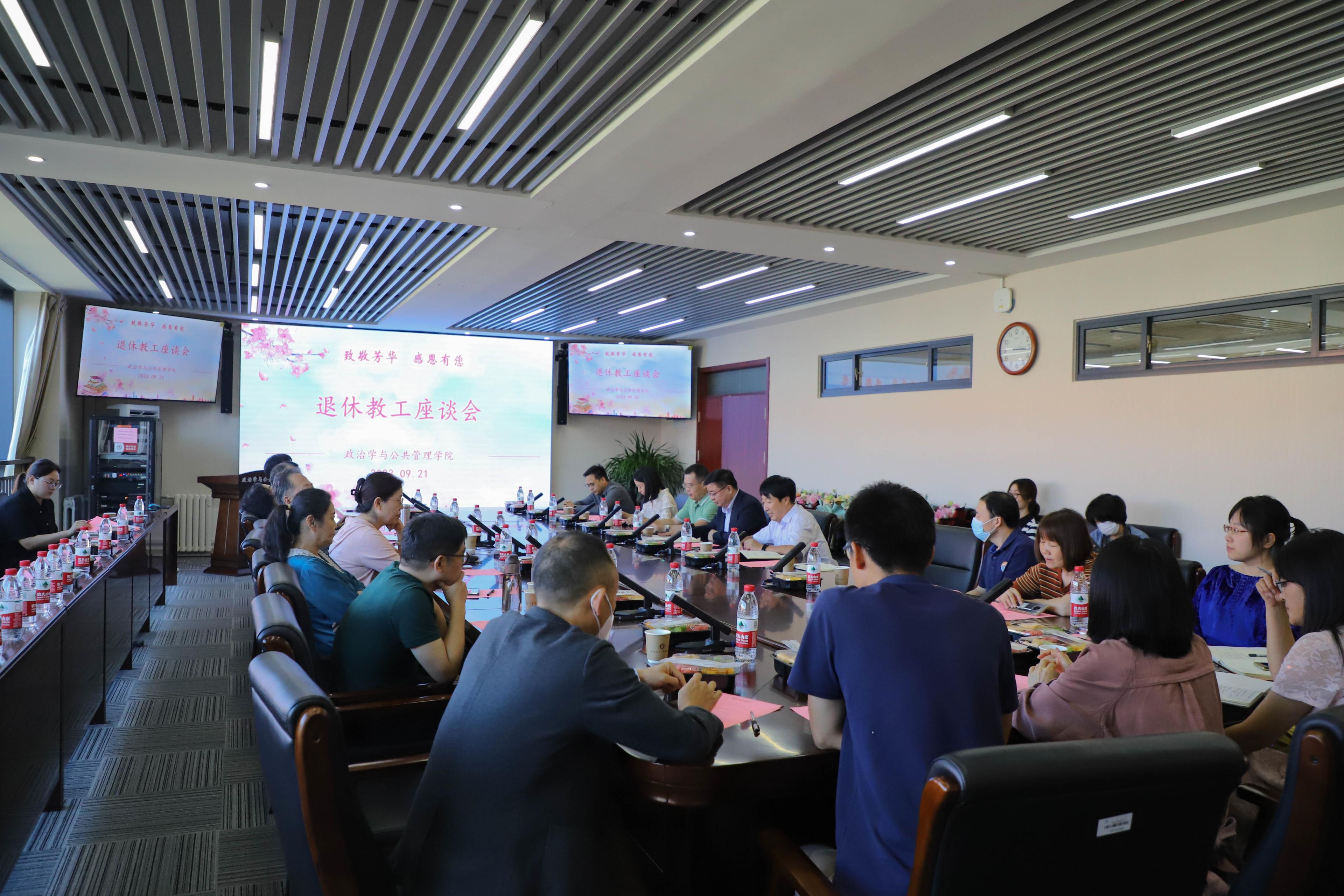 在华岗苑南楼436会议室举行退休教工座谈会。会议由学院党委书记盖玉强主持,常务副院长马奔出席会议并讲话。学院退休老师王建民、兰华、崔开华、吕连仁、吴东民、彭展、葛双林、学院领导班子成员、青年教师代表、新聘教师代表、学生代表参加会议。