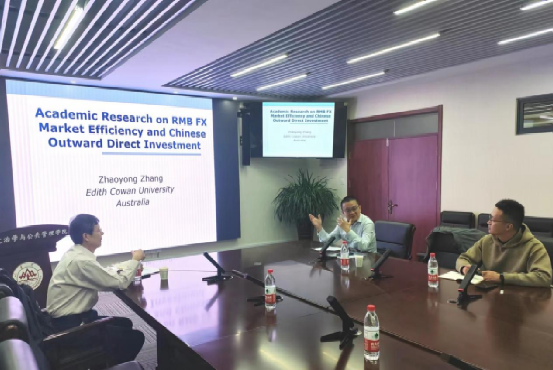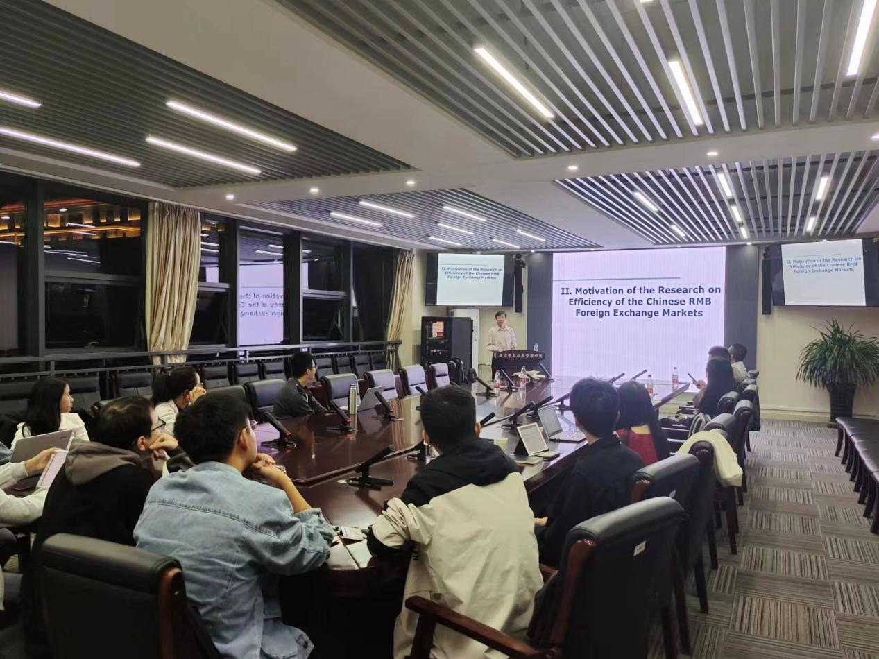 在交流互动环节,张照勇教授和盛力教授就文献综述写作、论文投稿、数据获取以及模型与指标的建立等问题与现场师生进行深入交流与讨论。通过本次近三个小时的活动,与会师生对英文论文选题与写作有了更深入的了解,也对中国外汇政策与海外投资现状有了更全面的认识。