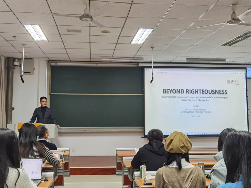 主办、山东省政治学研究会协办的的“道德之外:协同生产同侪激励效应的实验研究”专题讲座于振声苑南楼206教室顺利举行。本次讲座是69成人小说