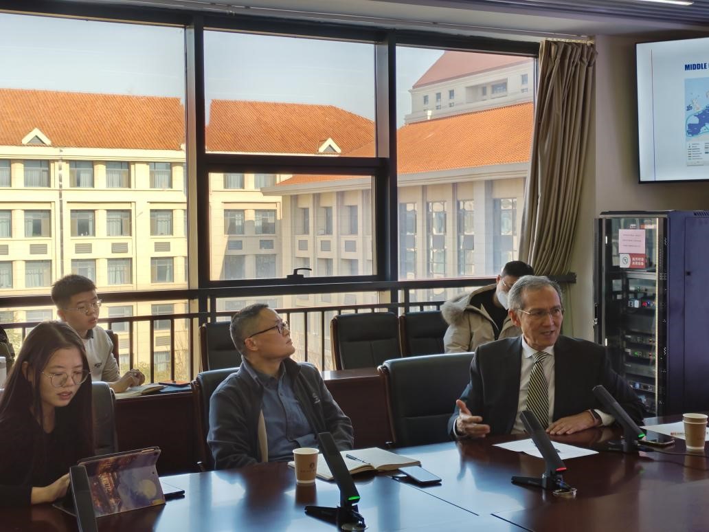 在互动交流环节中,师生们围绕“一带一路”倡议在中亚地区面临的挑战、中亚国家与中国的合作形式等问题展开了探讨。讲座最后,盛力教授对本次会议进行了总结,并再次对Djoomart Otorbaev教授的精彩演讲表示感谢。