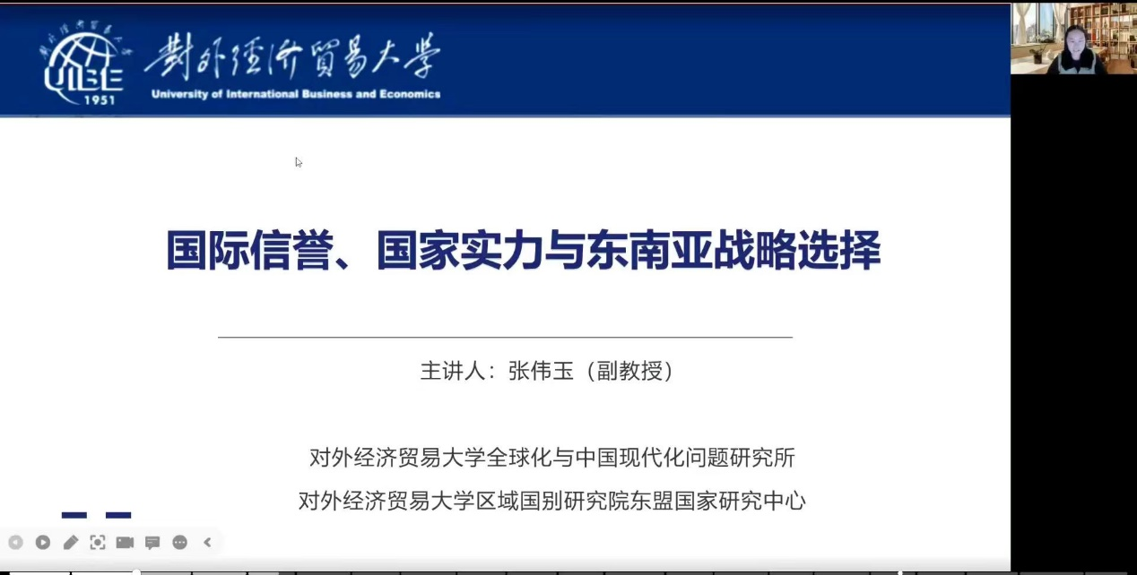 亚太经济合作组织研究中心承办的“社科与人文”系列讲座第二十三讲在线上顺利举办,讲座题目为“国际信誉、国家实力与东南亚战略选择”,由对外经济贸易大学张伟玉副教授主讲。69成人小说