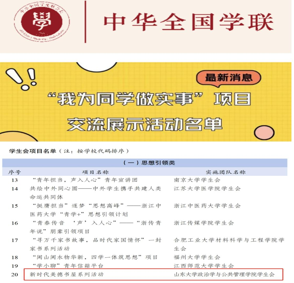 唯一入选的学院学生会项目。