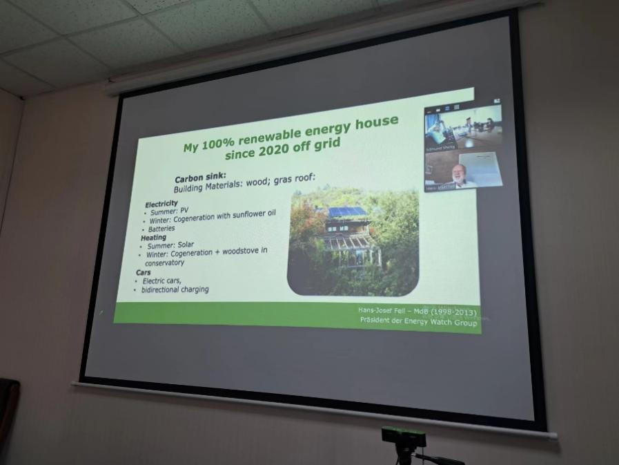 讲座伊始,Hans-Josef Fell教授点明,全球变暖已经敲响最后的警钟,人类生存和发展面临着严峻挑战,因此亟需就降低温室气体排放作出部署来为人类找到一条“全新世”的道路——转型迈向使用100%可再生能源零排放经济体和绿色碳汇。这不仅能够保持粮食和能源供应,更有利于世界经济。随着开发太阳能、风能等再生能源的成本不断下降,100%使用可再生能源已非遥不可及。Hans-Josef Fell教授也就如何实现使用100%可再生能源提出了技术建议和政策建议。盛力教授认为,中国一直在积极推动绿色发展和低碳发展,相关研究将有助于我们全面了解可再生能源的来源和发展应用等情况,具有重要的现实意义。