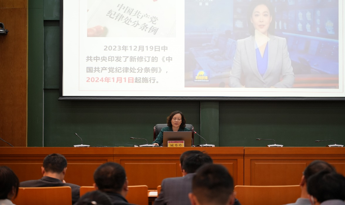 臧秀玲教授以“全面加强党的纪律建设 学习贯彻新修订的《中国共产党纪律处分条例》”为题,聚焦《条例》修订的主要内容和基本要求,准确把握《条例》修订的主旨要义,对《条例》进行深刻全面解读。臧秀玲指出,此次修订展现了《条例》鲜明的时代性和针对性。《条例》强调“严”字当头,“实”字托底,充分体现了党中央全面加强党的建设、实现全面从严治党的决心和信心。广大党员要在党纪教育中增强遵规守纪自觉,在严格执纪敢于斗争中推动全面从严治党向纵深发展。