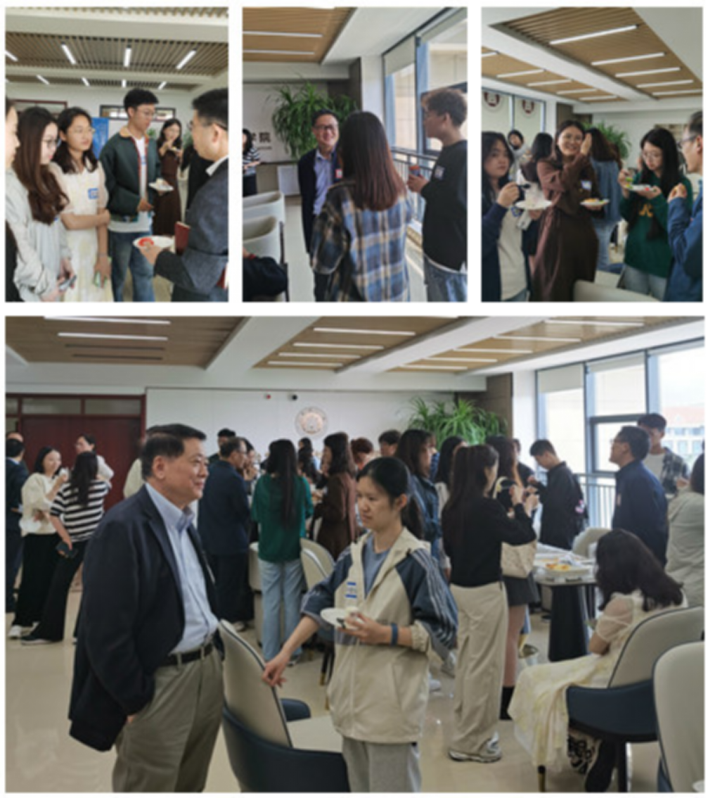 集体交流后,与会老师和同学们又进行了有针对性的面对面交流。同学们就确定研究方向、专业学习方法、未来职业发展等话题与老师们展开了深入交流,老师们也结合具体案例提供了实用建议,分享了自己在学术道路上的心得体会。现场气氛热烈、互动频繁,师生教学相长,亦师亦友。