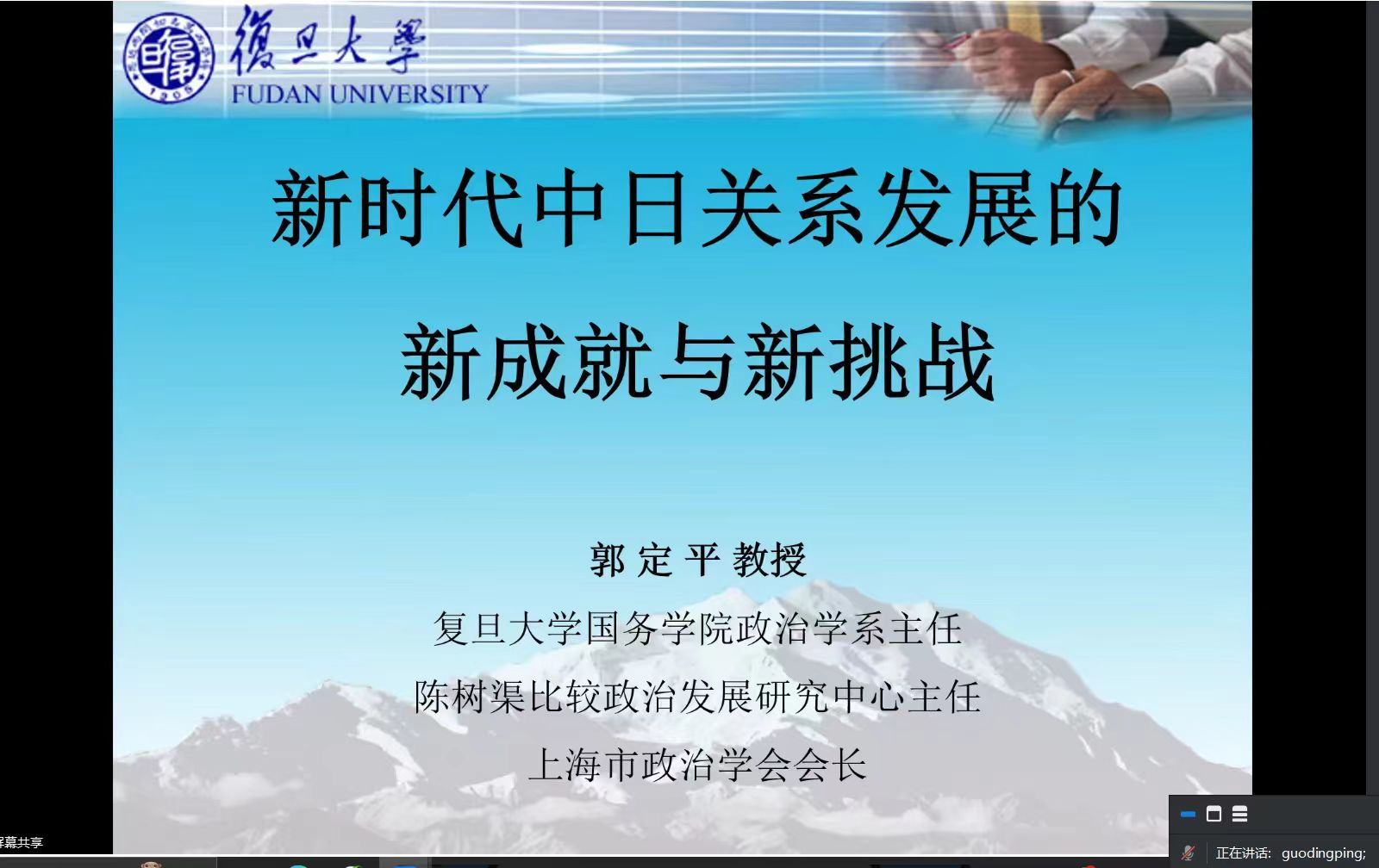 亚太研究所/亚太经济合作组织研究中心承办的“社科与人文”系列讲座第二十六讲在线上顺利举办,讲座题目为“新时代中日关系的新成就与新问题”,由复旦大学国际关系与公共事务学院郭定平教授主讲。69成人小说
