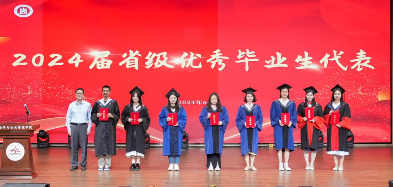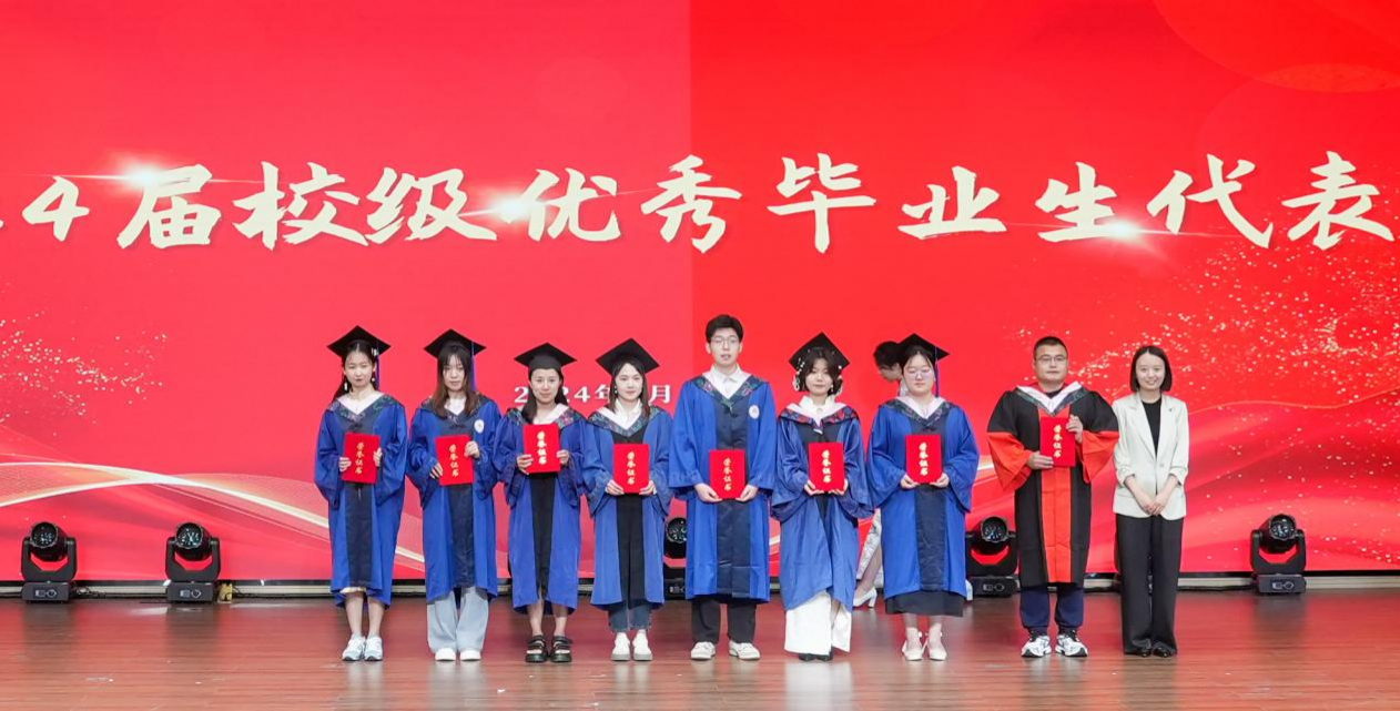 关于表彰2024届校级优秀毕业生的决定》,学院副院长赵婷、学院副院长孙宗锋分别为2024届校级优秀研究生毕业生代表、2024届校级优秀本科生毕业生代表颁发获奖证书。