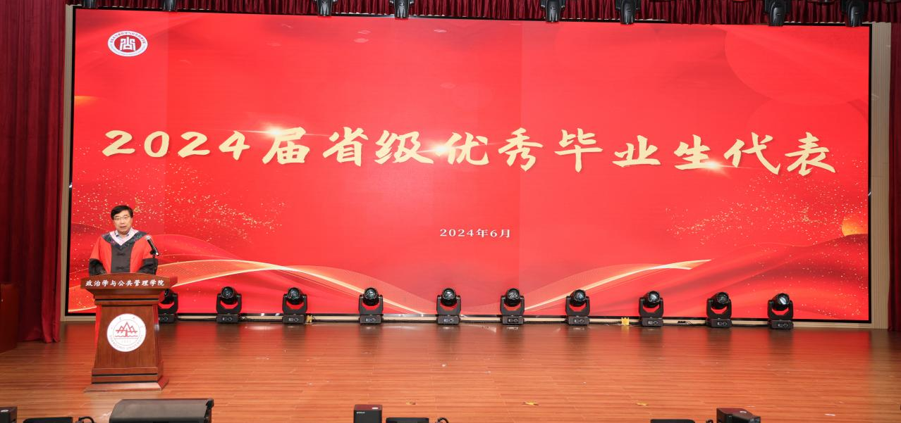 关于表彰2024届省级优秀毕业生的决定》,学院副院长朱贵昌为2024届省级优秀毕业生代表颁发获奖证书。