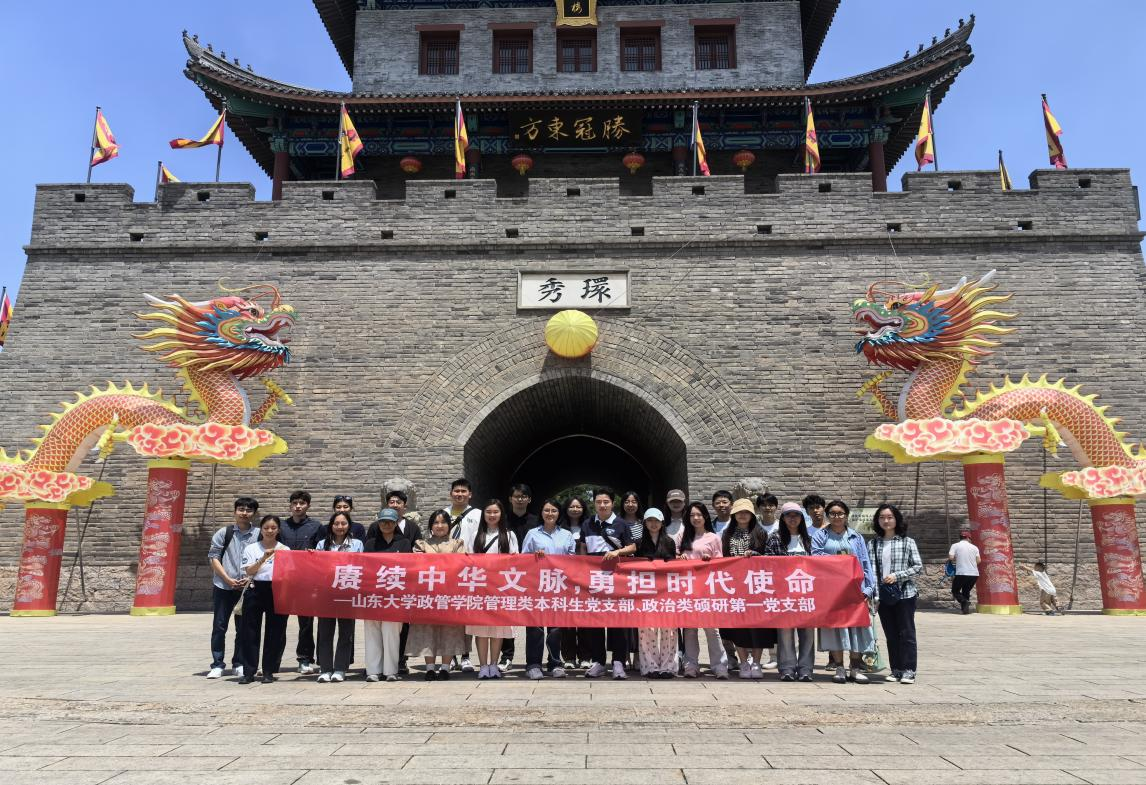 管理类本科生党支部、政治类硕研第一党支部赴即墨古城联合开展“赓续中华文脉,勇担时代使命”主题党日活动,谒文庙、赏非遗、包粽子、颂廉洁,聆听即墨历史典故、感悟德廉教育、体验传统文化。学院团委书记、管理类本科生党支部书记于玲,团委副书记、政治类硕研第一党支部书记王之夏,以及党员代表参加活动。