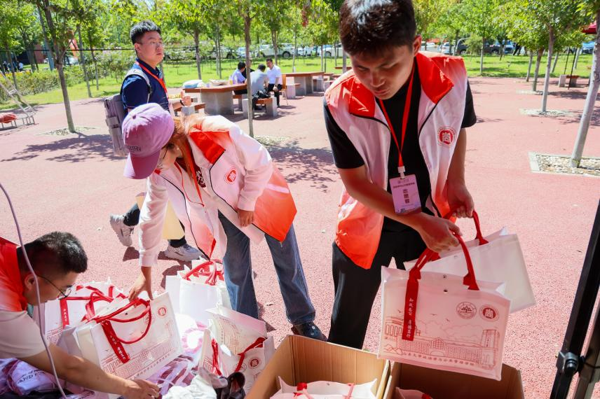 迎新现场设置了制作精美的横幅和展板,展板集中介绍了学院学科建设,生动地展示了学院文化、学术成就以及历届优秀毕业生的风采。学院还为新生精心准备了大礼包,包含带有政管院徽的书签、卡夹、笔记本、小风扇、卡套、鼠标垫等突出学院特色的小礼品,既凸显了实用意义,又饱含对新同学的美好期许,希望每一位政管新生都能感受到家一般的温暖。